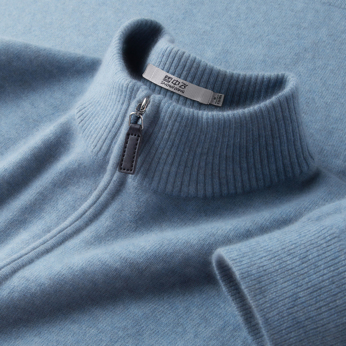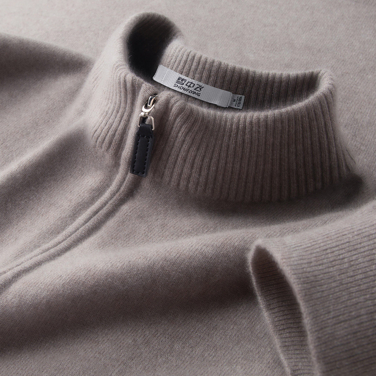 马年新年厚款【30%山羊绒】秋冬半高领时尚拉链羊绒衫男
