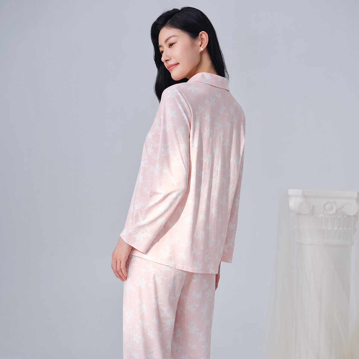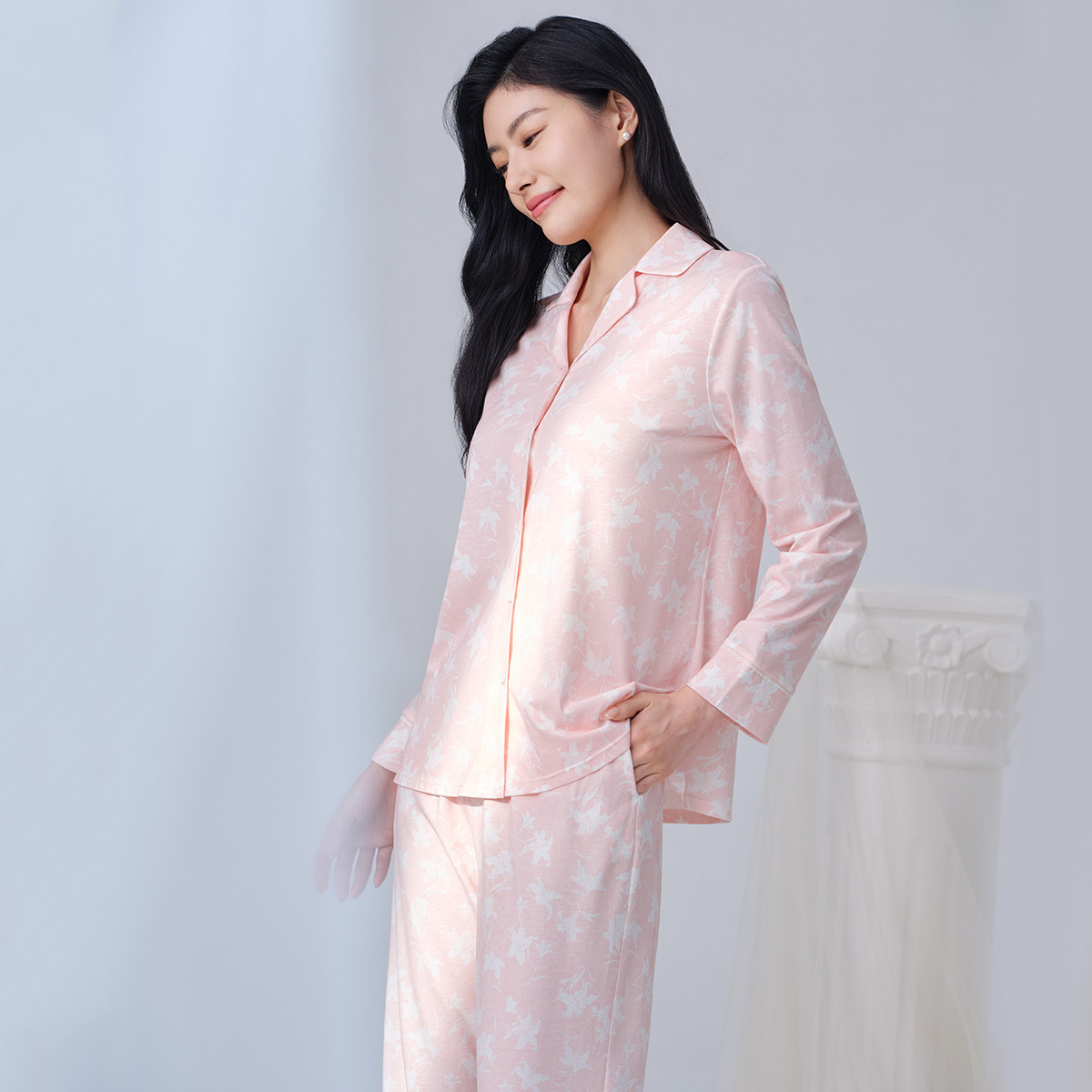 安莉芳旗下E-BRA专柜新品棉质印花长袖睡衣套装女士家居服KL00187