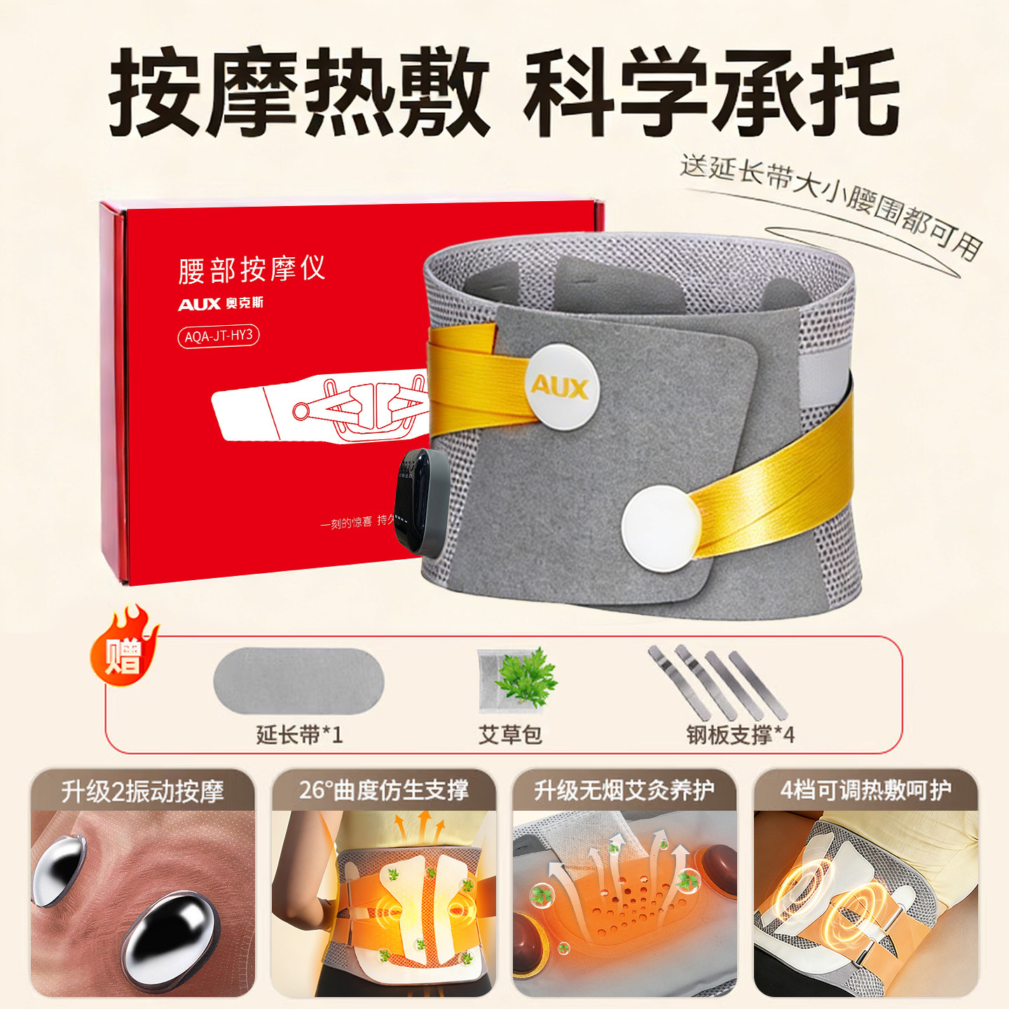 奥克斯加热护腰带保暖暖宫按摩仪理疗透气按摩器热敷充电腰椎腰肌