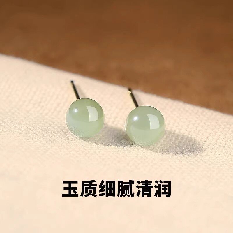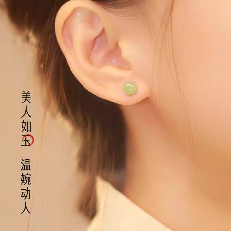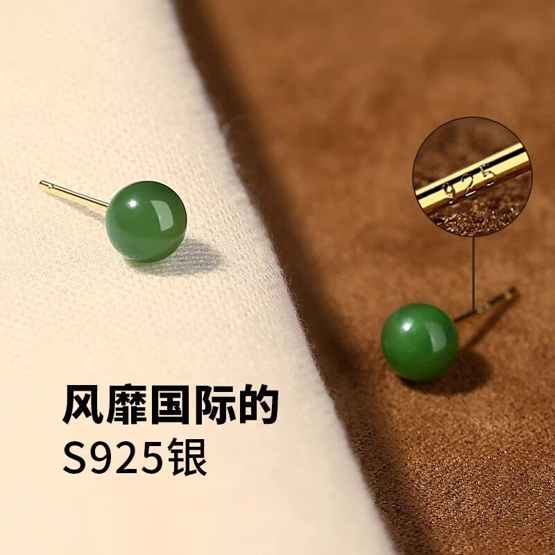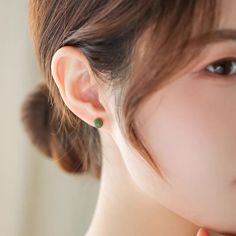 925银针菠菜绿碧玉简约耳饰天然和田玉耳钉女款气质小众耳环玉石