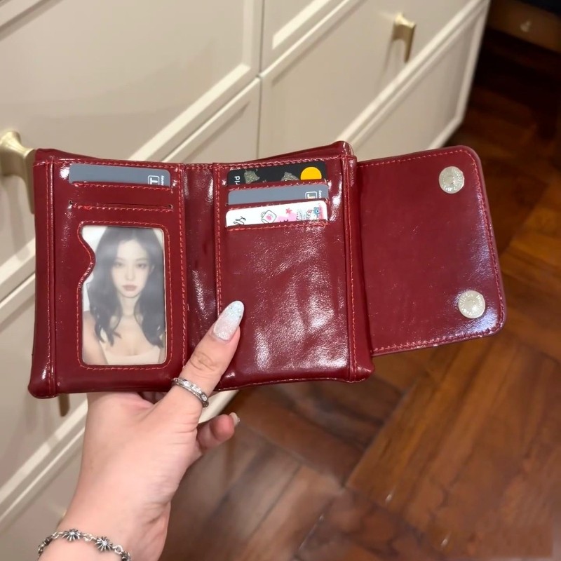 复古真皮质感钱包女士短款2026新款小清新学生多卡拉链皮夹零钱包