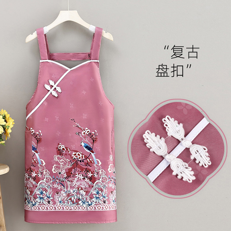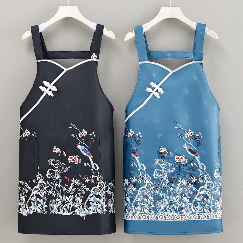新中式女款漂亮围裙居家防污透气餐饮背带工作服复古盘扣高颜值