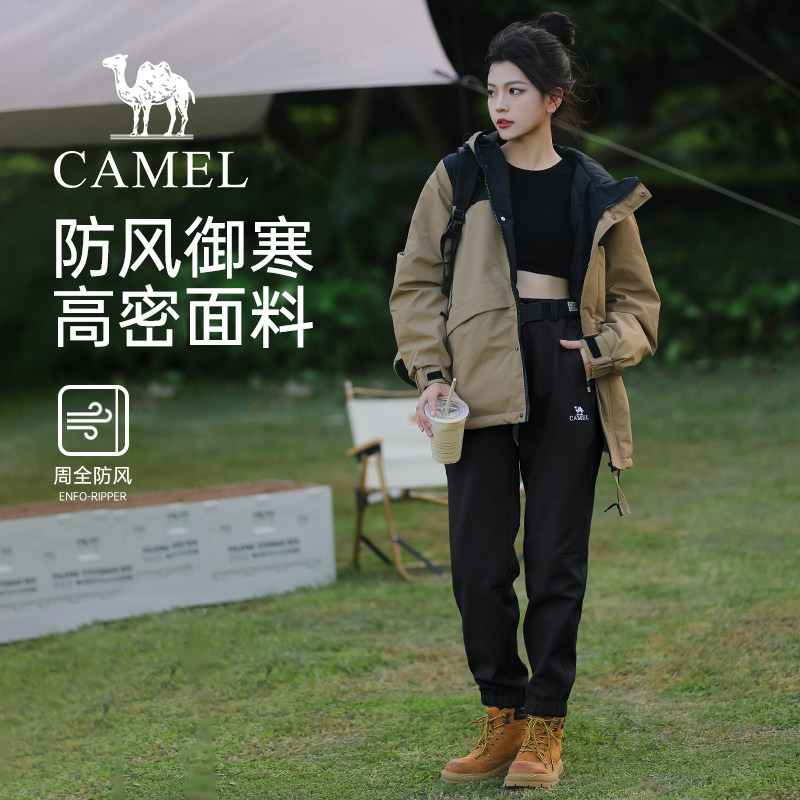 骆驼女装户外冲锋裤女2025秋季软壳男士束脚裤防风美式直筒工装裤