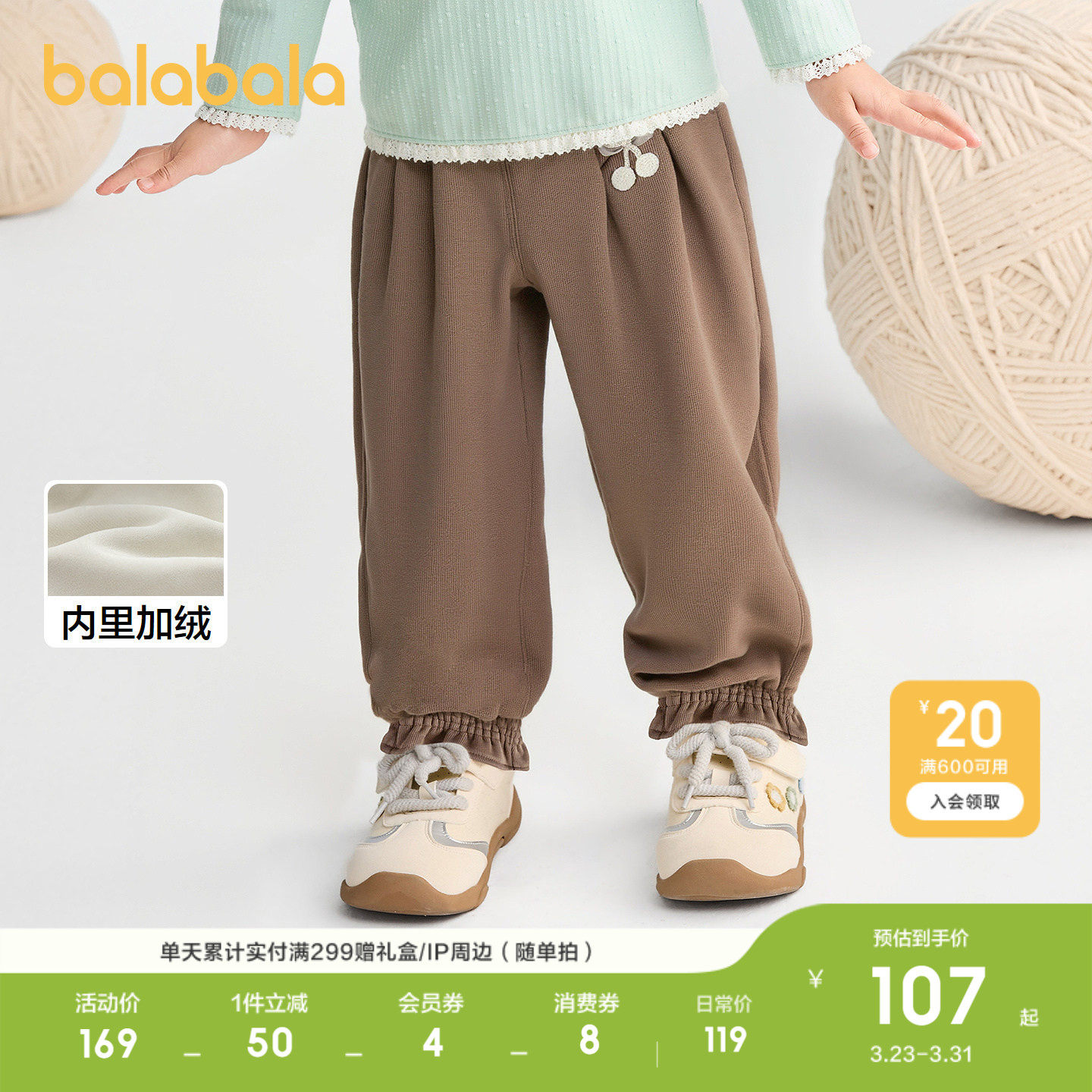 【商场同款】巴拉巴拉童装女童长裤加绒2026冬装休闲儿童灯笼裤子
