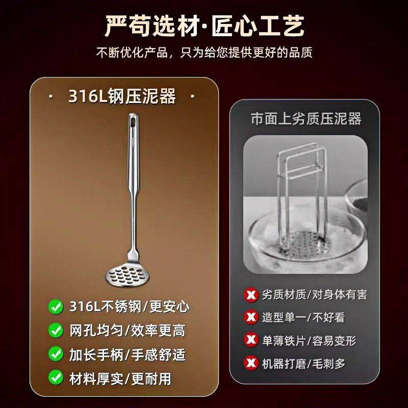 德国316不锈钢压泥器土豆泥按压器食品级婴儿辅食压泥勺捣泥神器