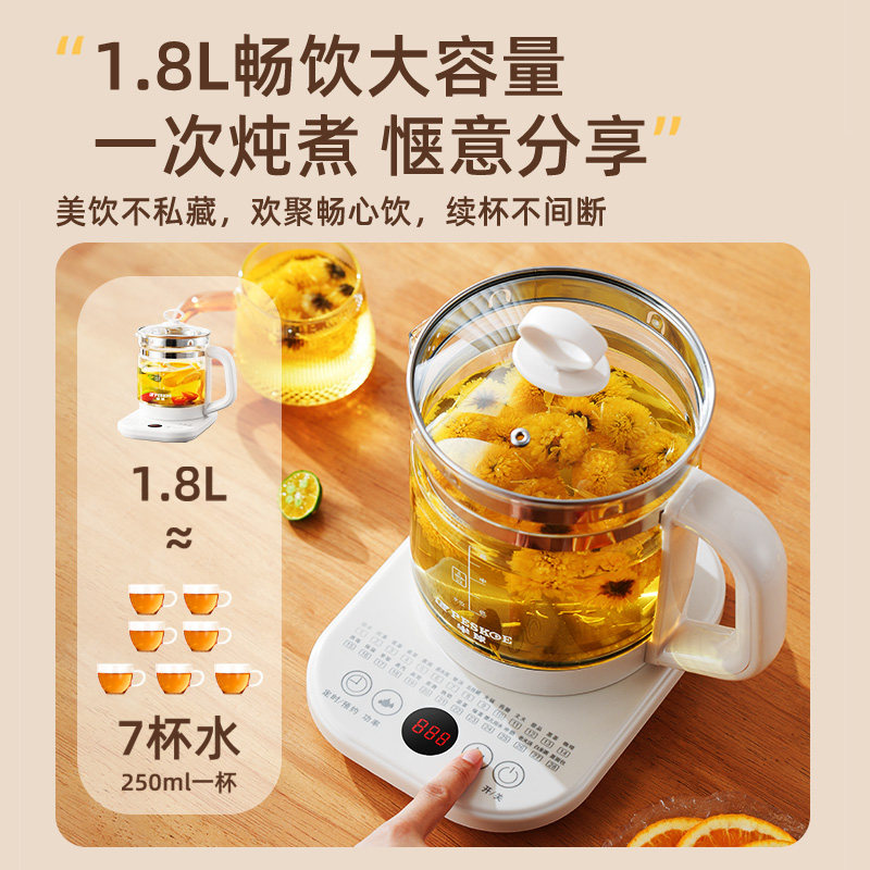 九阳全玻璃养生壶炖煮一体煮茶器小型办公室新款花茶恒温电热水壶