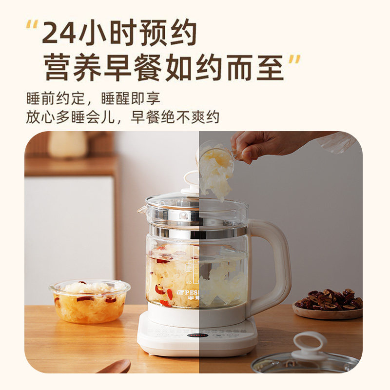 美的全玻璃恒温养生壶办公室小型多功能家用炖煮一体热水壶纯玻璃
