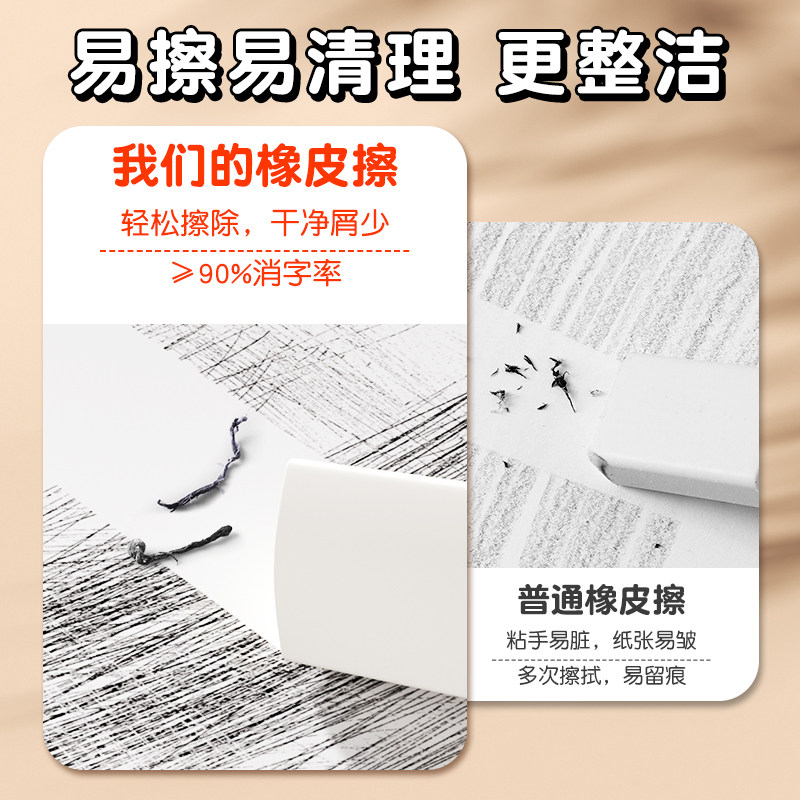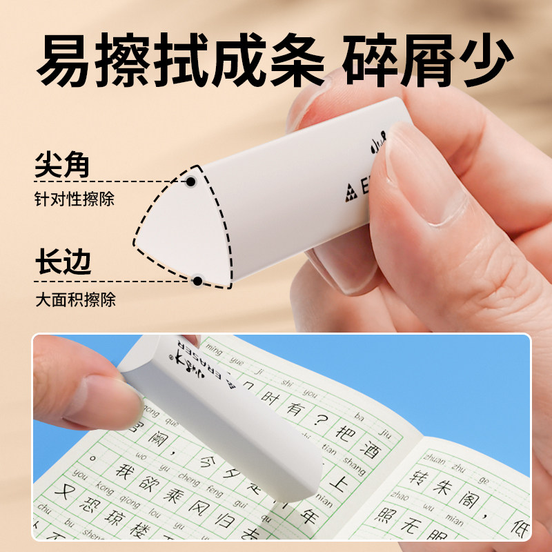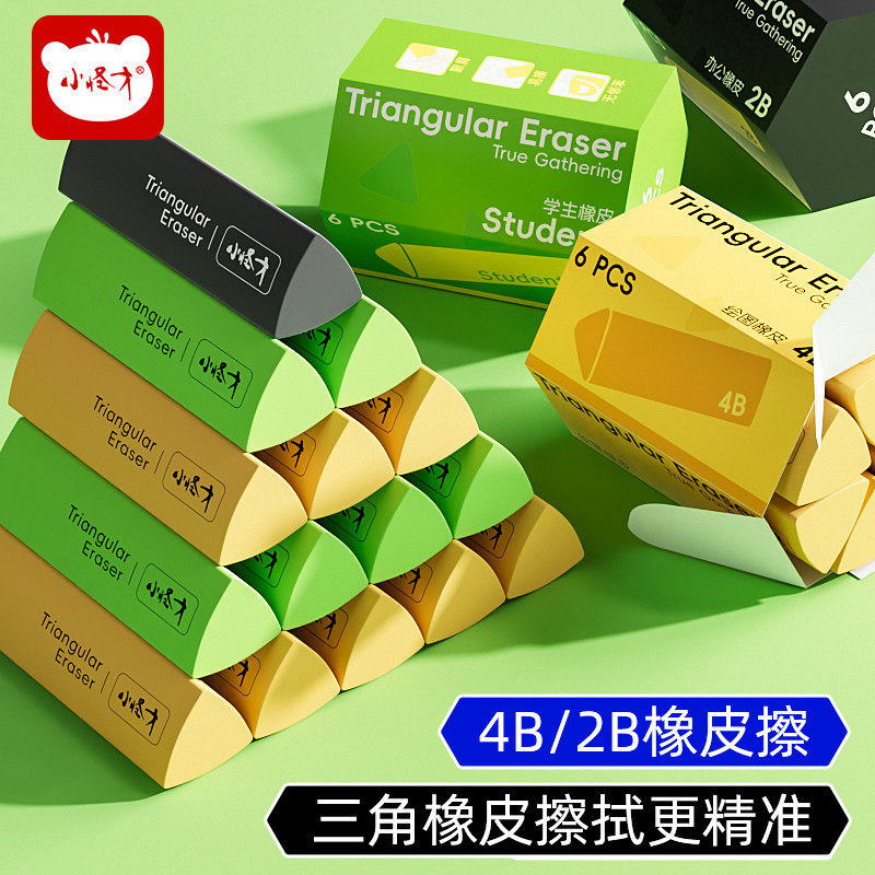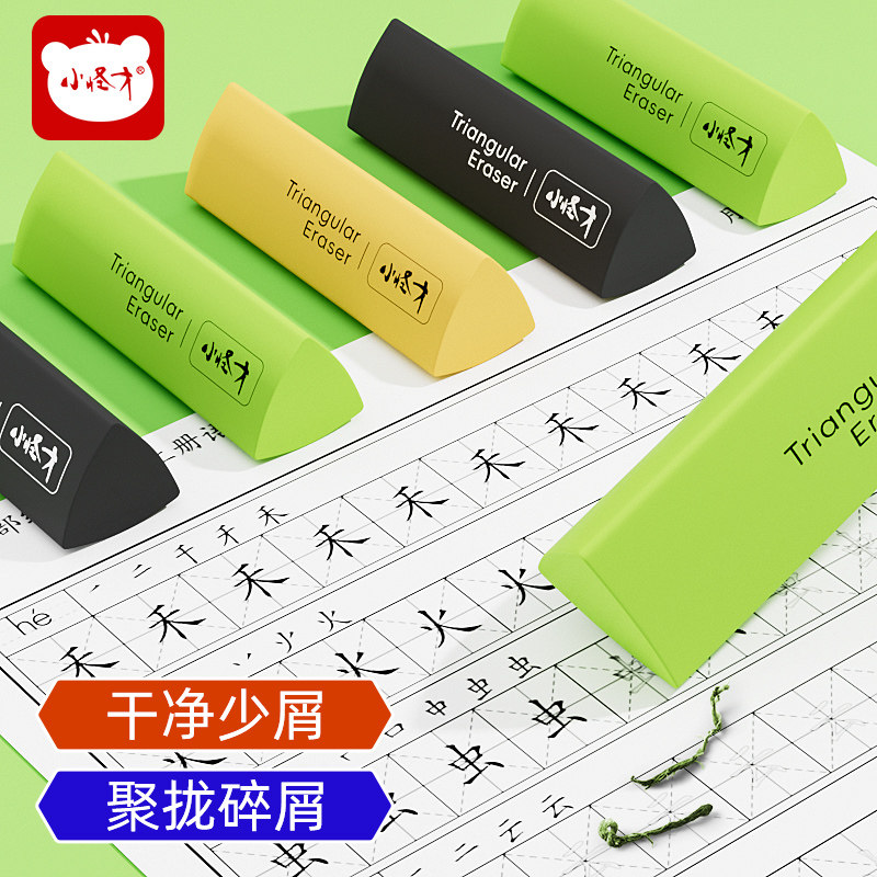 小怪才三角橡皮擦小学生专用无屑干净不留痕学生学习用品集屑擦字成线学生素描美术绘图答题卡真集屑橡皮擦