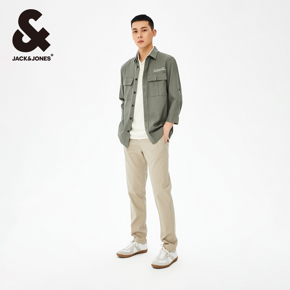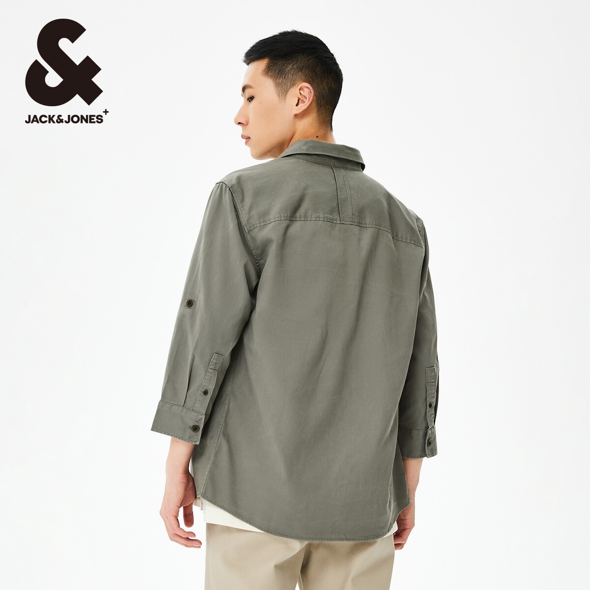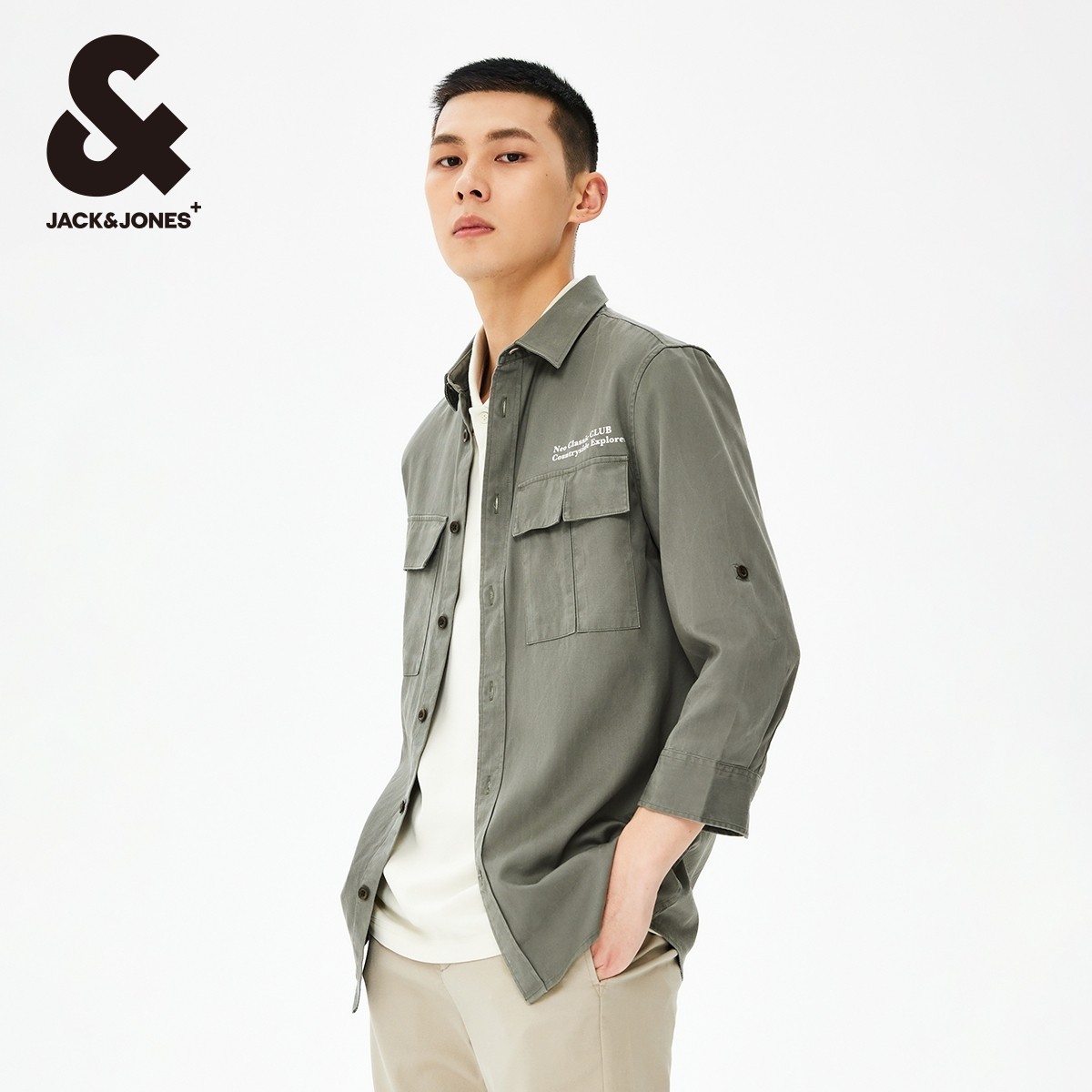 杰克琼斯夏季新款潮流男士时尚百搭简约舒适七分袖工装风衬衫男装