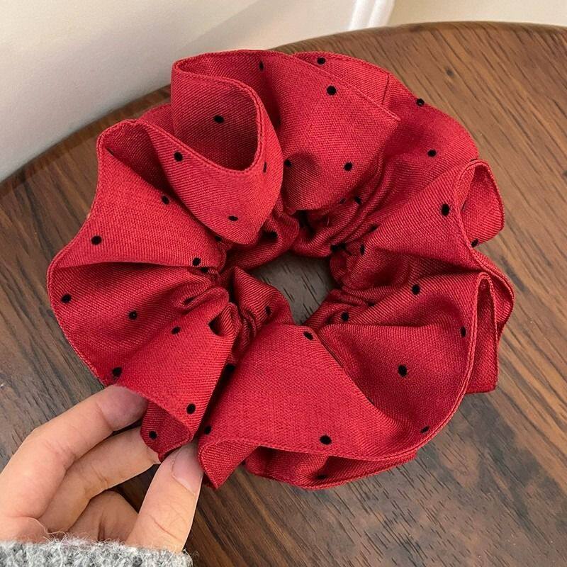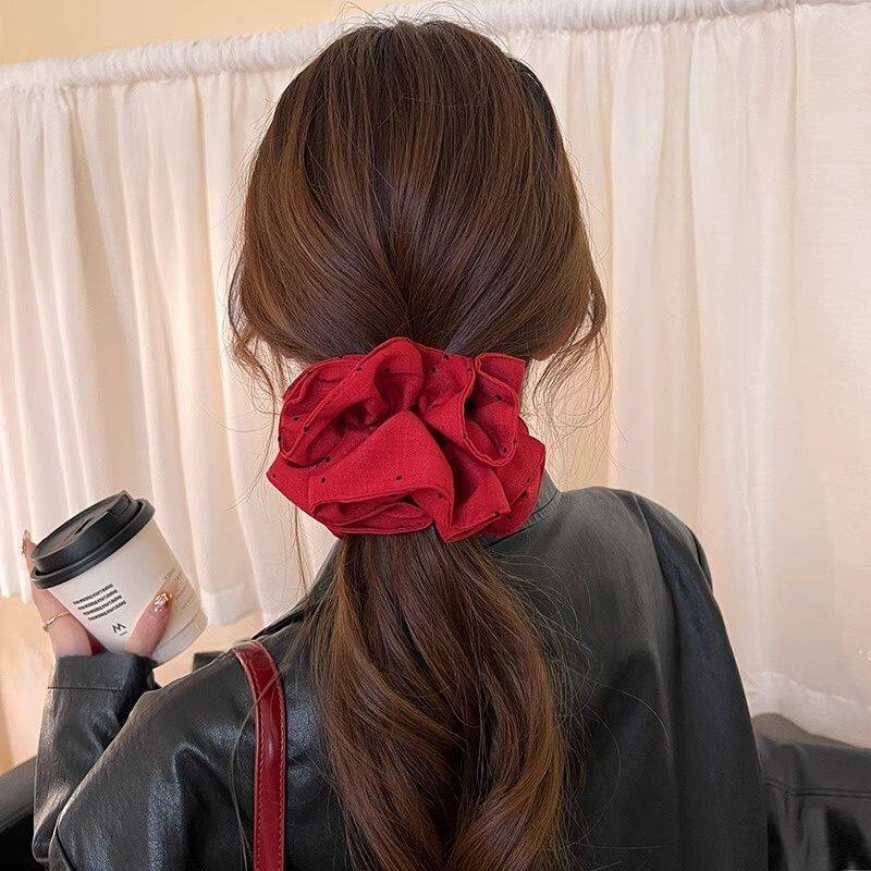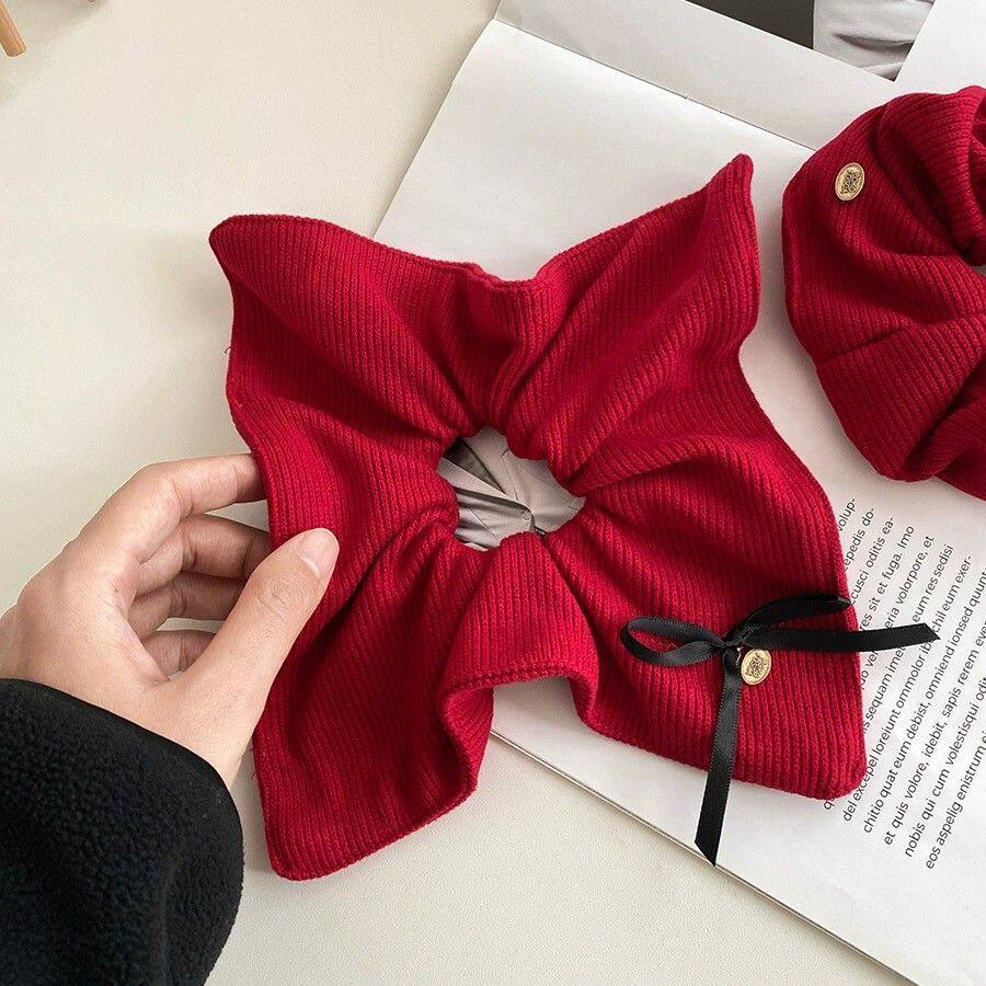 红色方巾大肠发圈女高级感秋冬头绳慵懒风低丸子头发饰蝴蝶结蕾丝