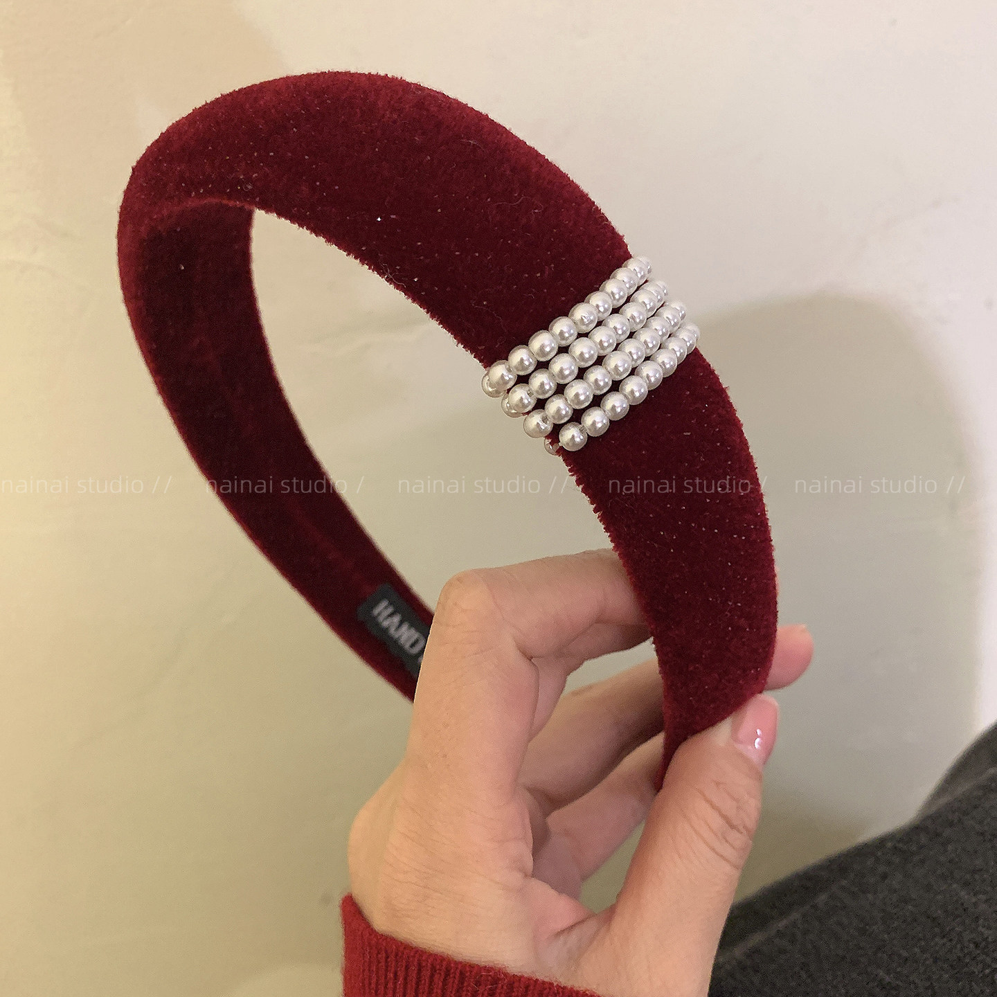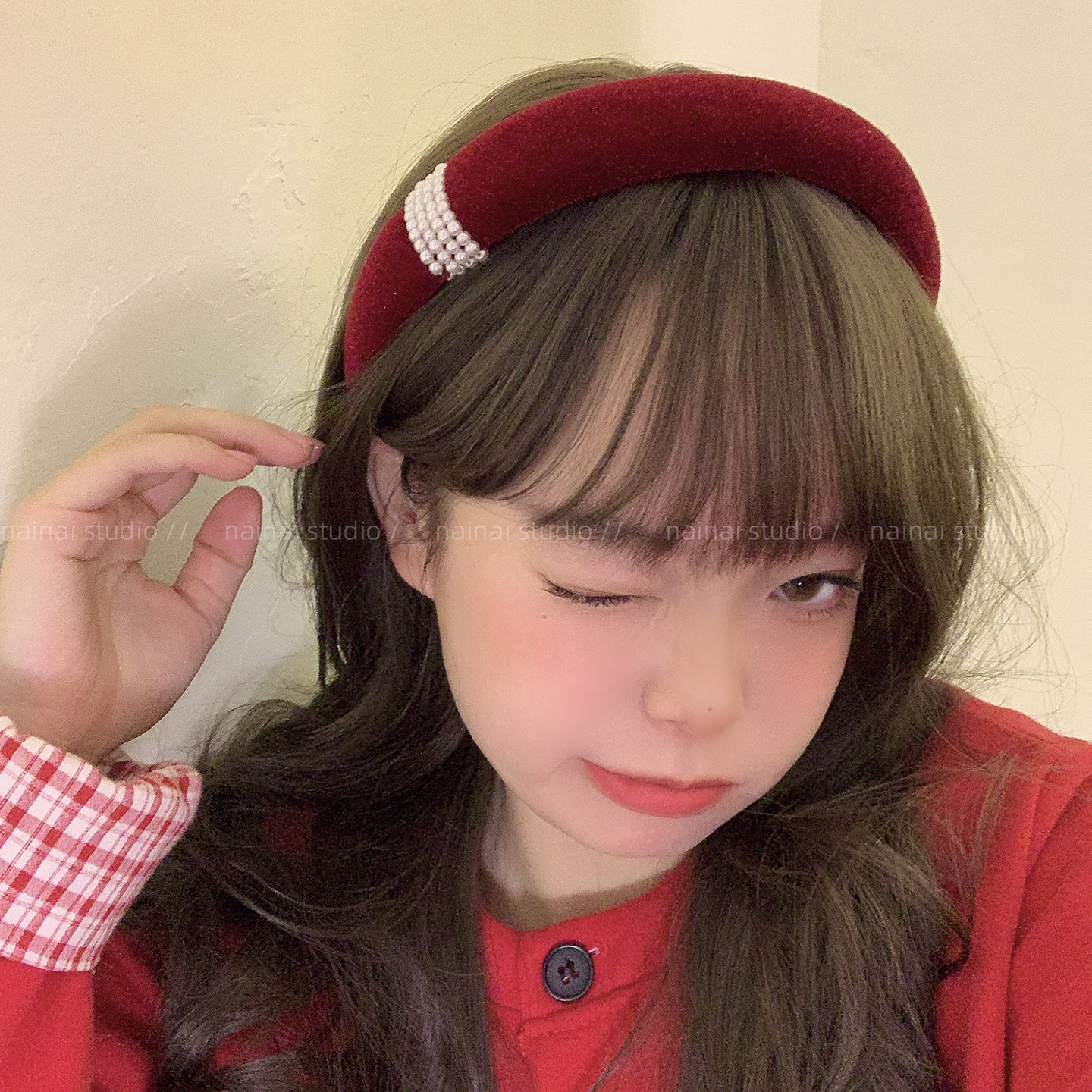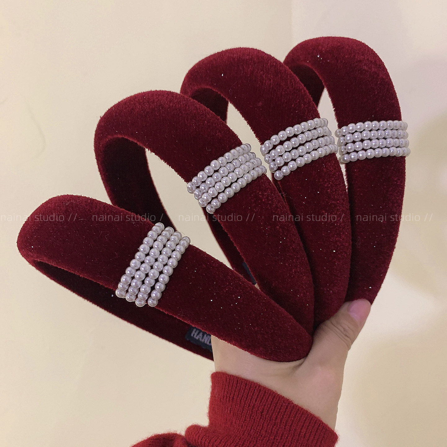 红色珍珠发箍~丝绒满天星高级感新年头箍高颅顶复古法式发夹发饰