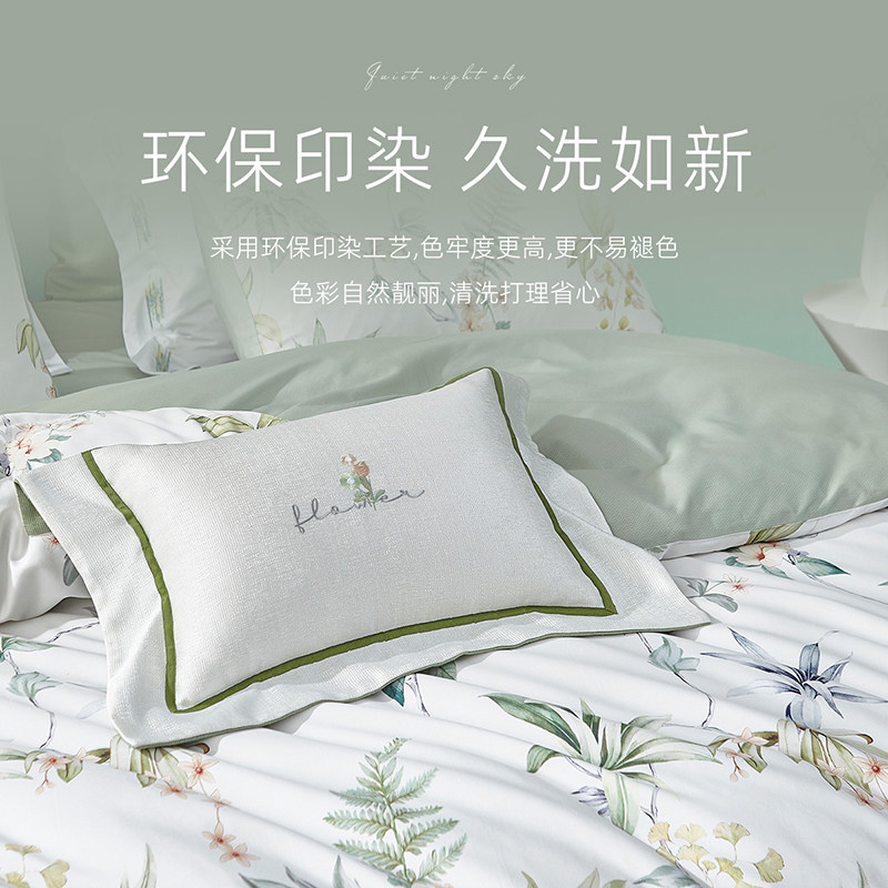 A类双层纱床上四件套纯棉全棉新款田园床单件被套被罩宿舍三件套4