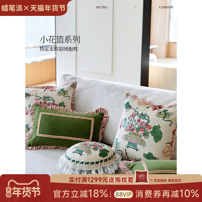 蜡笔派「小花篮系列」花趣闲情抱枕法式复古沙发靠垫卧室定制O