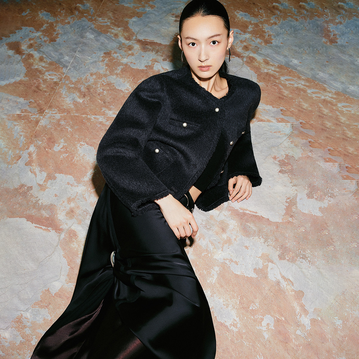 COCOBELLA静奢风珠片花纱毛呢外套短款廓形小香风西装WL507