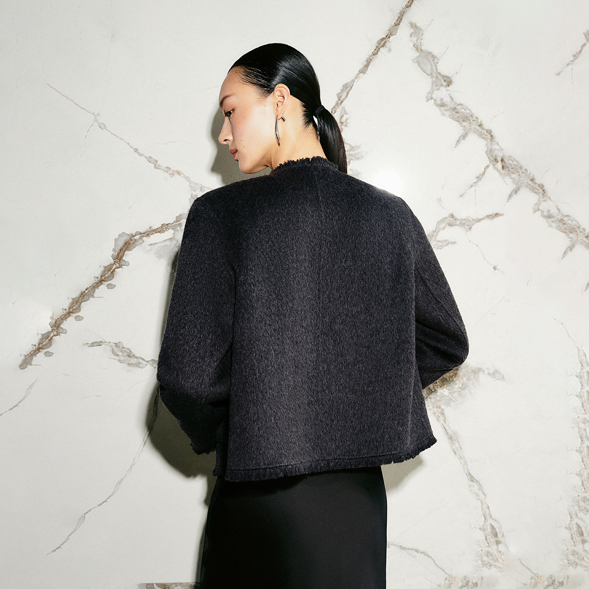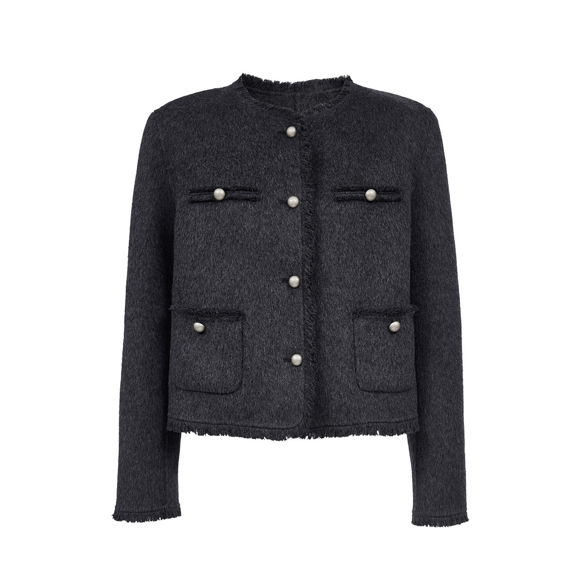 Vero Moda毛呢外套2025冬季新款纯羊毛流苏包边上衣气质32544T005