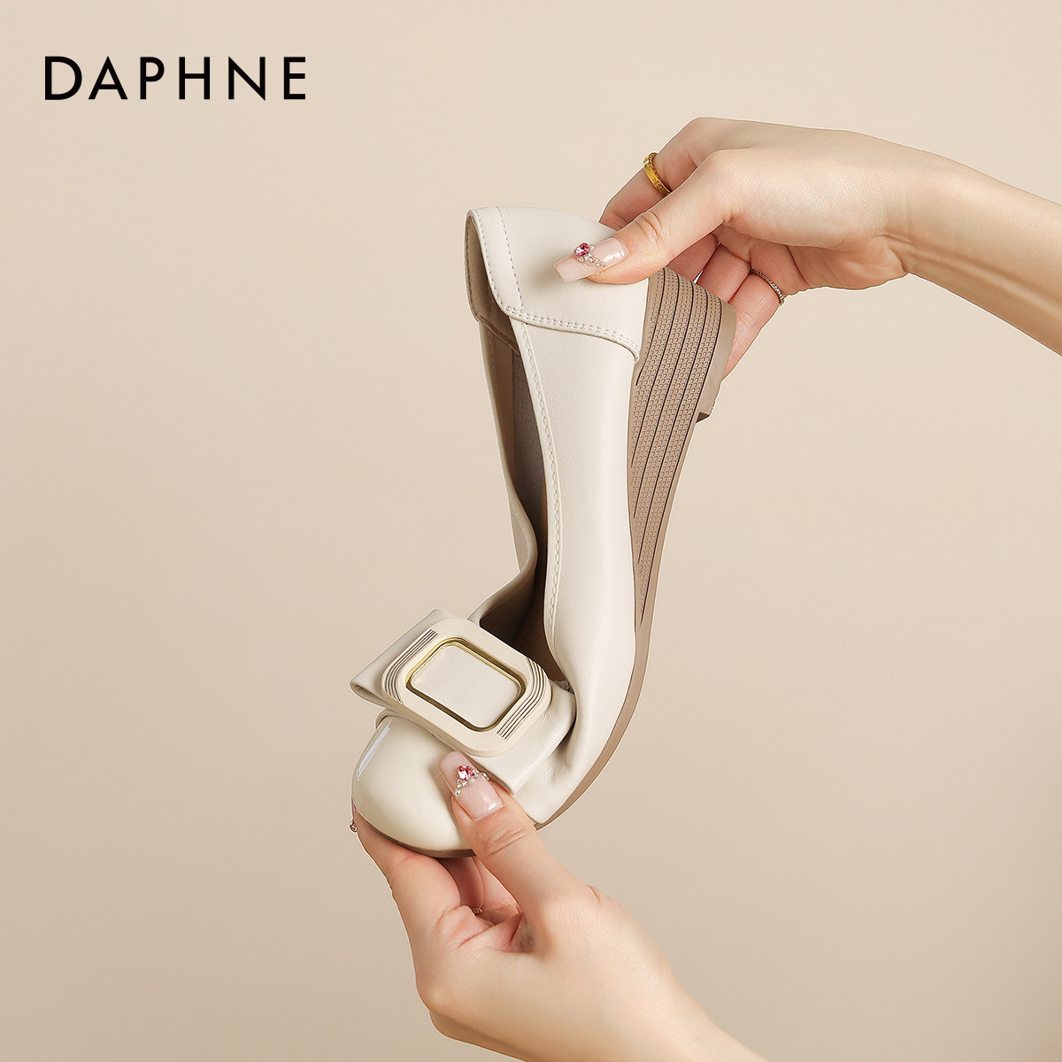 达芙妮坡跟浅口单鞋女2026新款春季白色方扣玛丽珍女鞋通勤小皮鞋