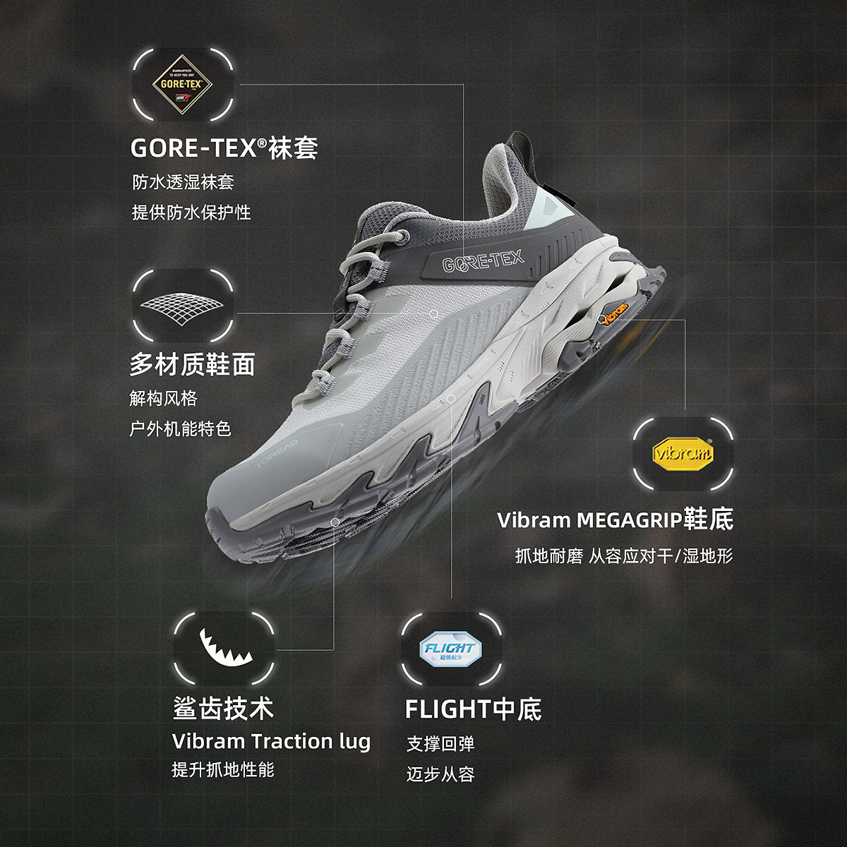 探路者专业徒步鞋女鞋GORE-TEX防水透湿VIBRAM抓地防滑耐磨登山鞋