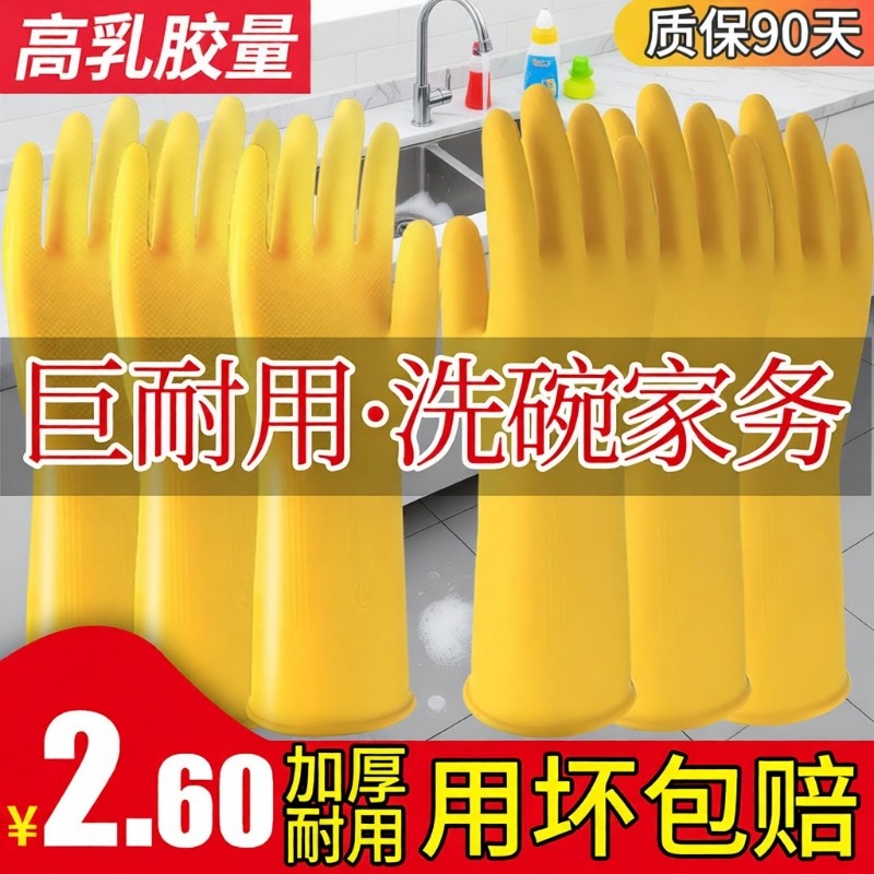 胶手套橡胶耐磨防水乳胶厨房洗碗女加厚胶皮家务牛筋耐用劳保清洁