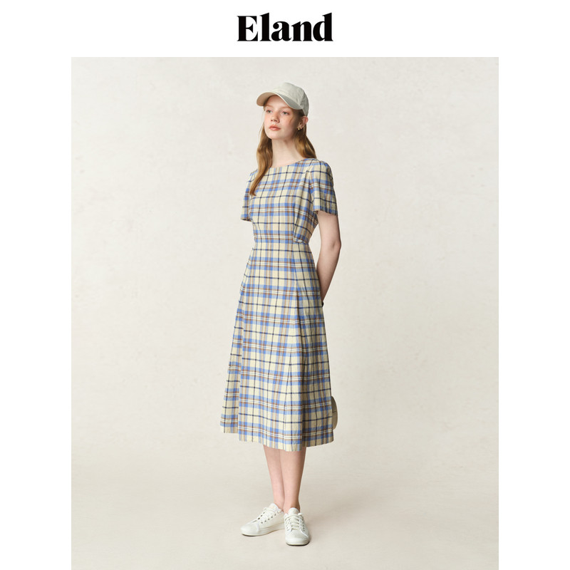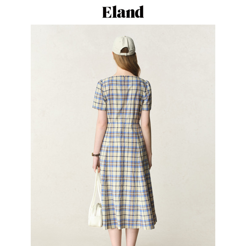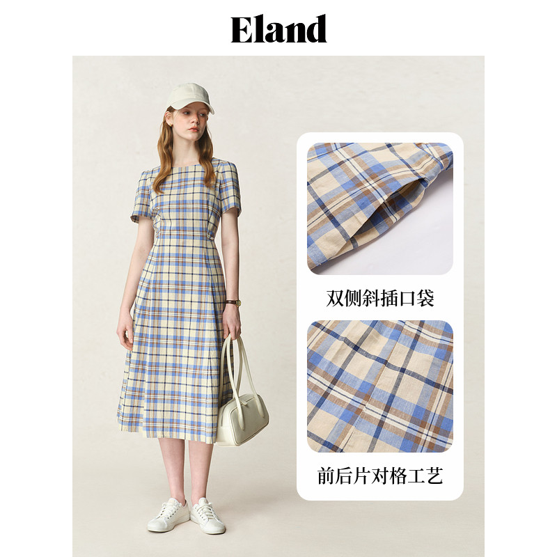 【法国亚麻】Eland衣恋连衣裙女格纹侧口袋裙子2025夏季新款淡人