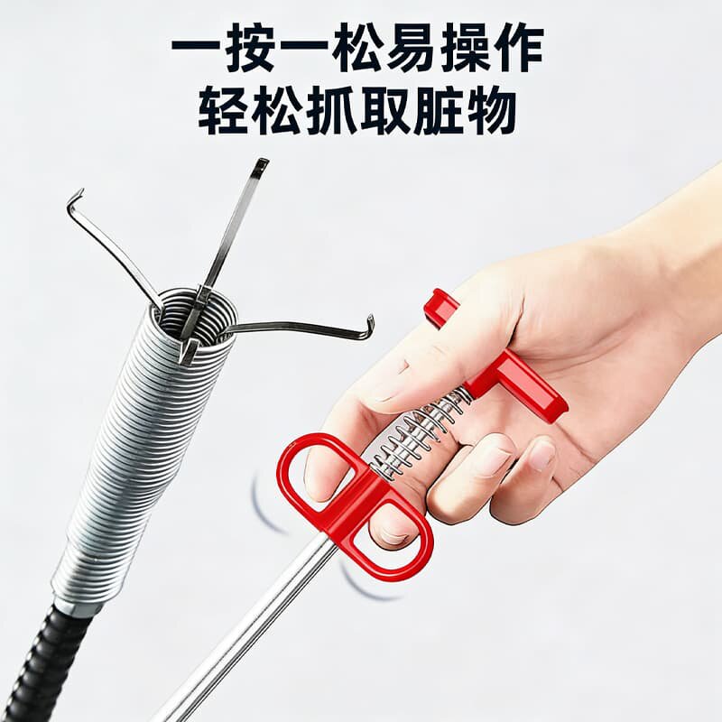 新款管道疏通器下水道异物垃圾夹四爪取物器厕所马桶清理工具