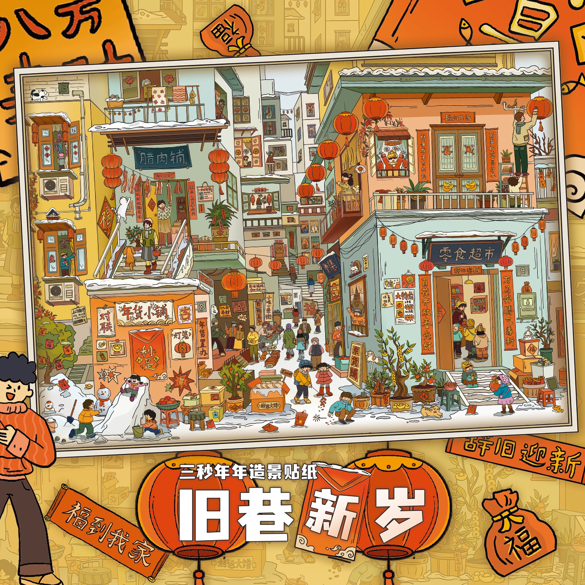 三秒年年3.0造景贴纸旧巷新岁新年街景系列3D立体微缩场景diy贴画高难度童话风儿童益智手工拼图贴纸玩具女孩