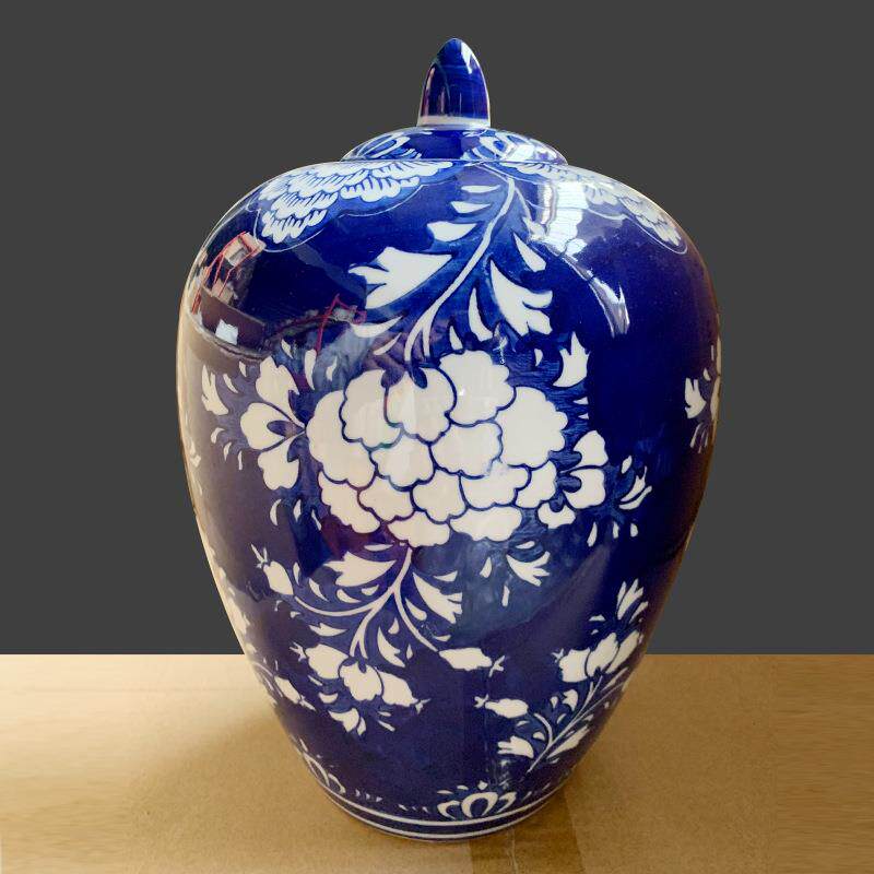 新中式居家客厅玄关桌面花瓶储物罐青花瓷陶瓷罐子摆件