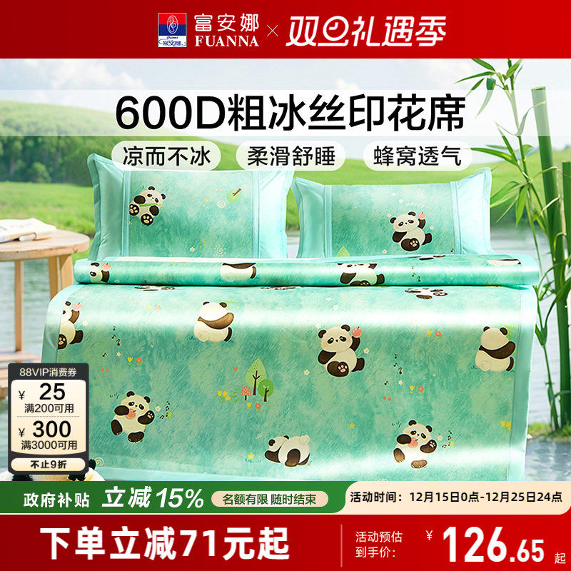 富安娜凉席儿童款凉席床垫粗冰丝凉感软席学生宿舍可机洗床护垫
