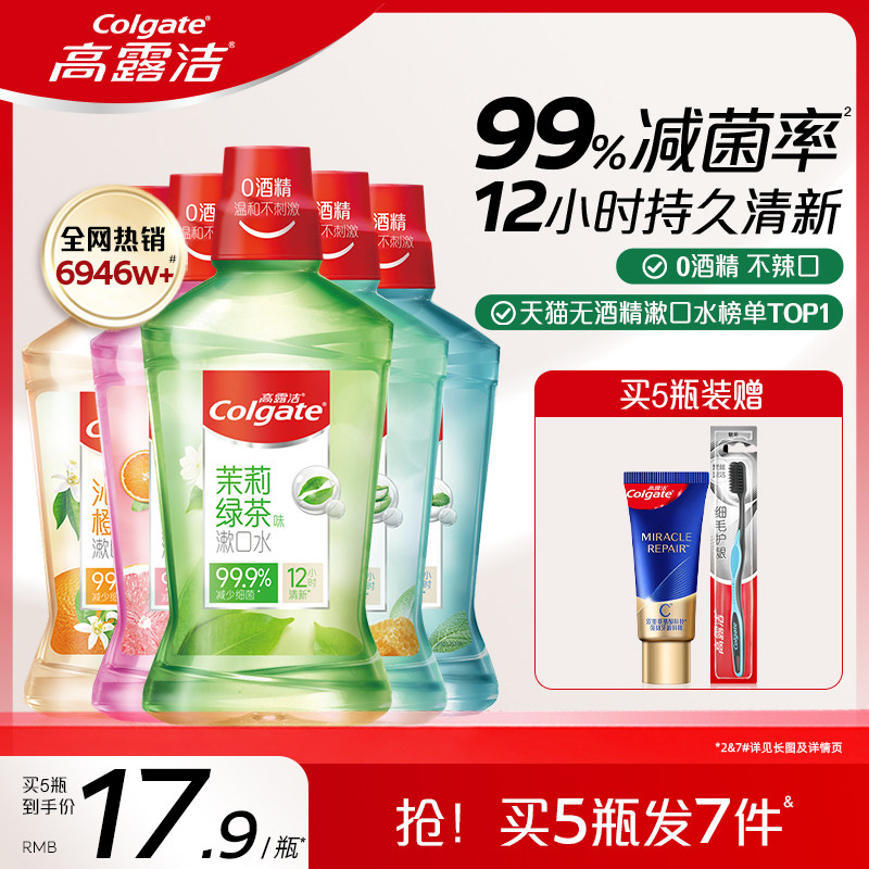 高露洁漱口水杀菌持久留香无酒精防蛀去口臭便携式绿茶薄荷精油