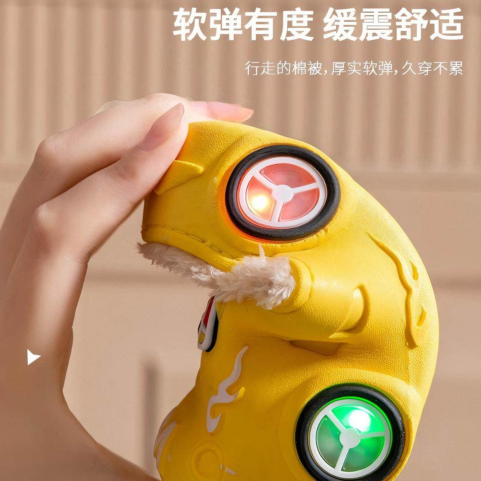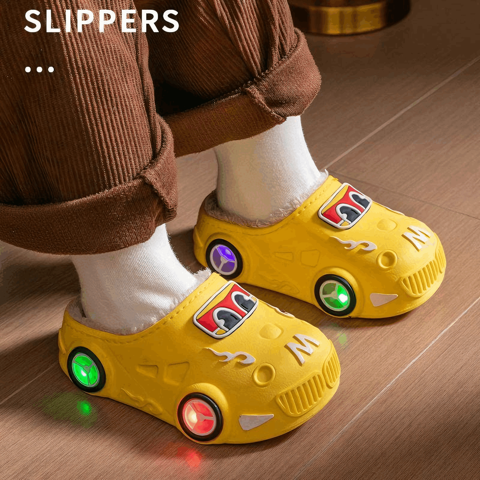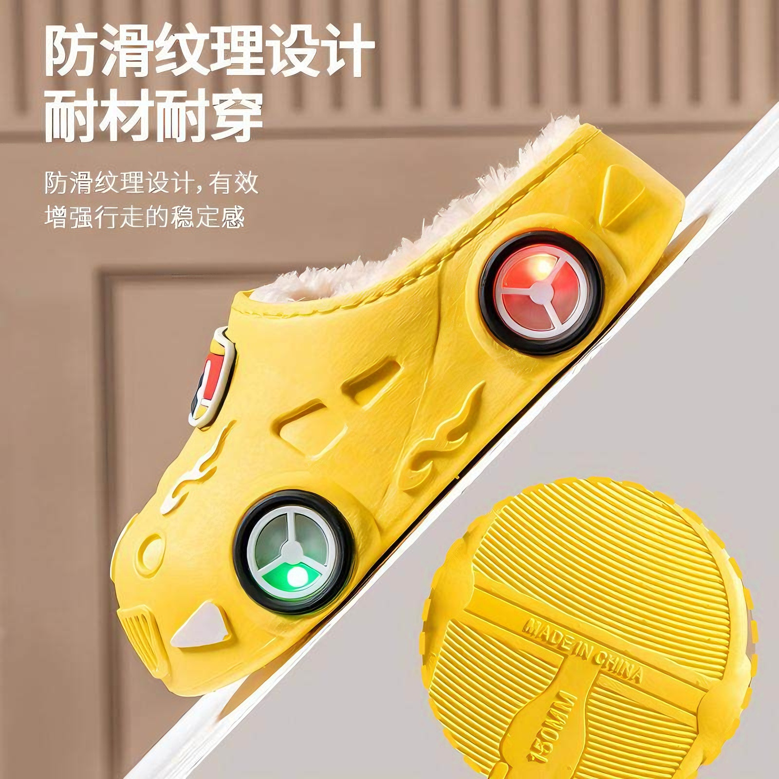 儿童棉拖鞋秋冬季男女童汽车发光防滑软底室内外加绒保暖防水亮灯