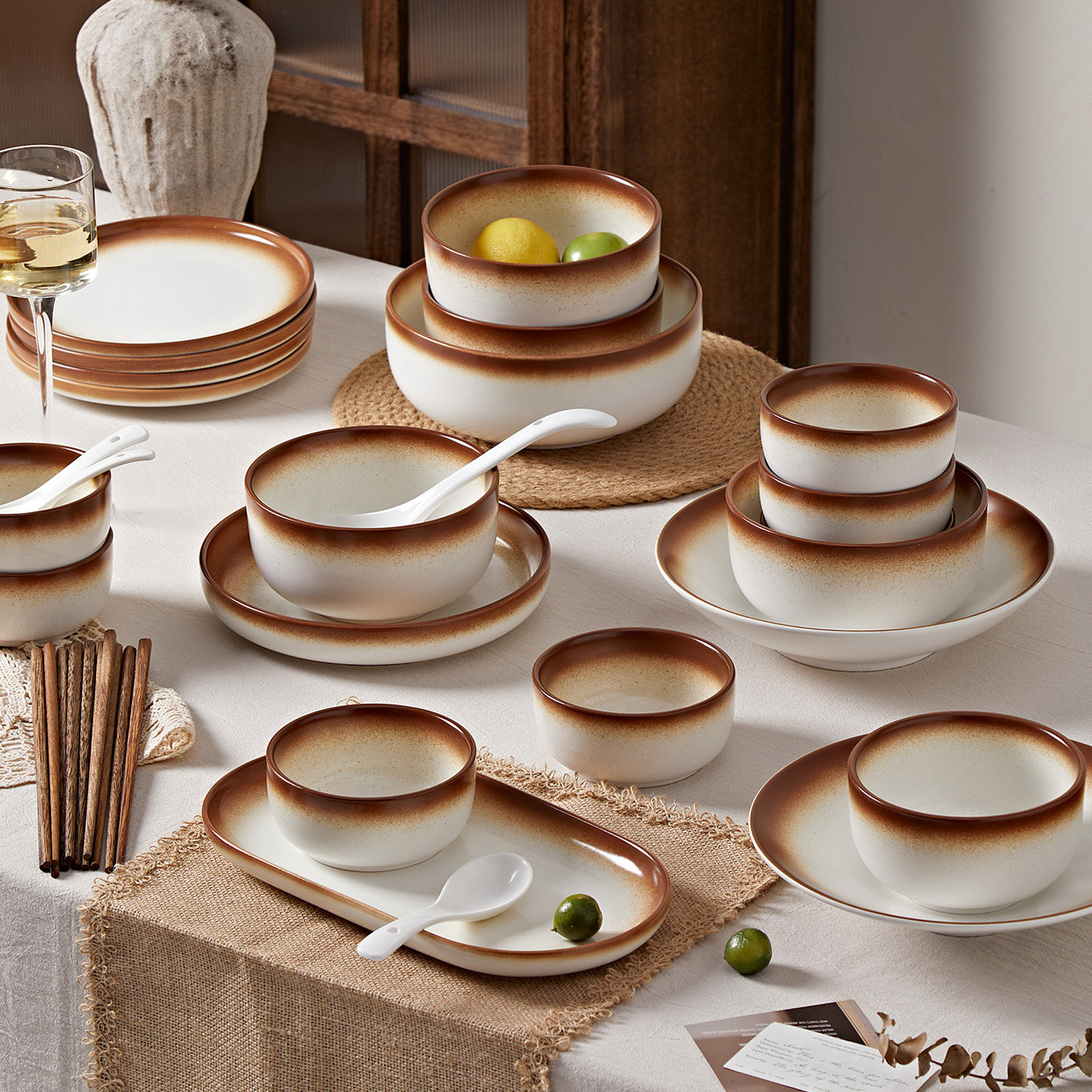 复古简约餐具碗碟家用2026新款釉下彩高颜值碗盘筷组合装陶瓷乔迁