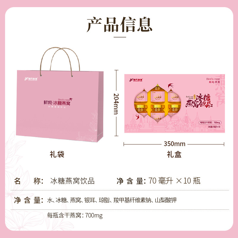 捷氏瑞健鲜炖即食冰糖燕窝70ml*10瓶礼盒装补充营养女人孕妇送礼