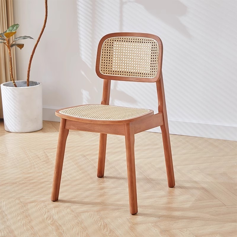 藤编实木餐椅家用休闲简约网红北欧法式餐厅中古靠背椅子软包原木