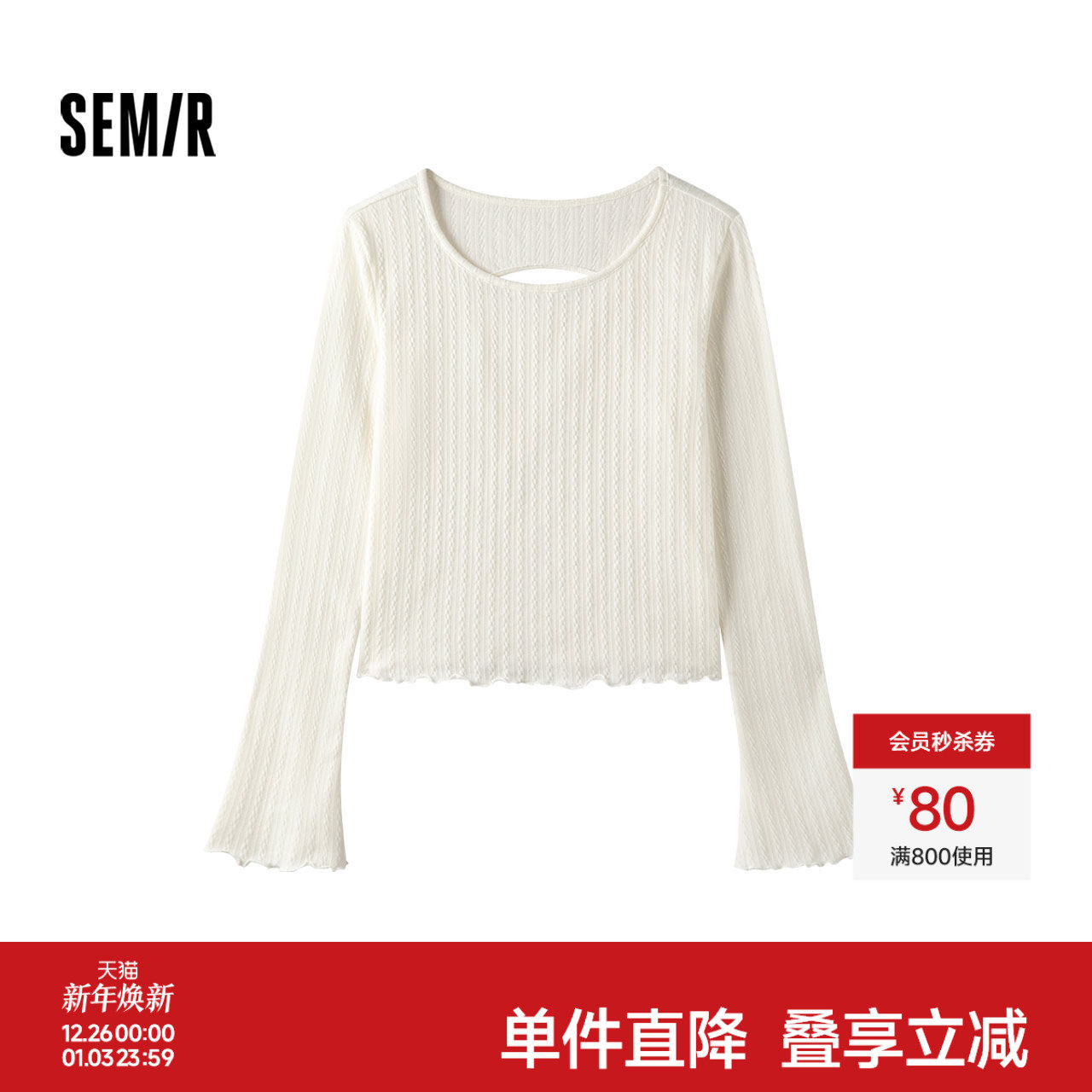 森马内衣女镂空设计感打底衫修身显瘦内搭纯色百搭上衣甜美木耳边