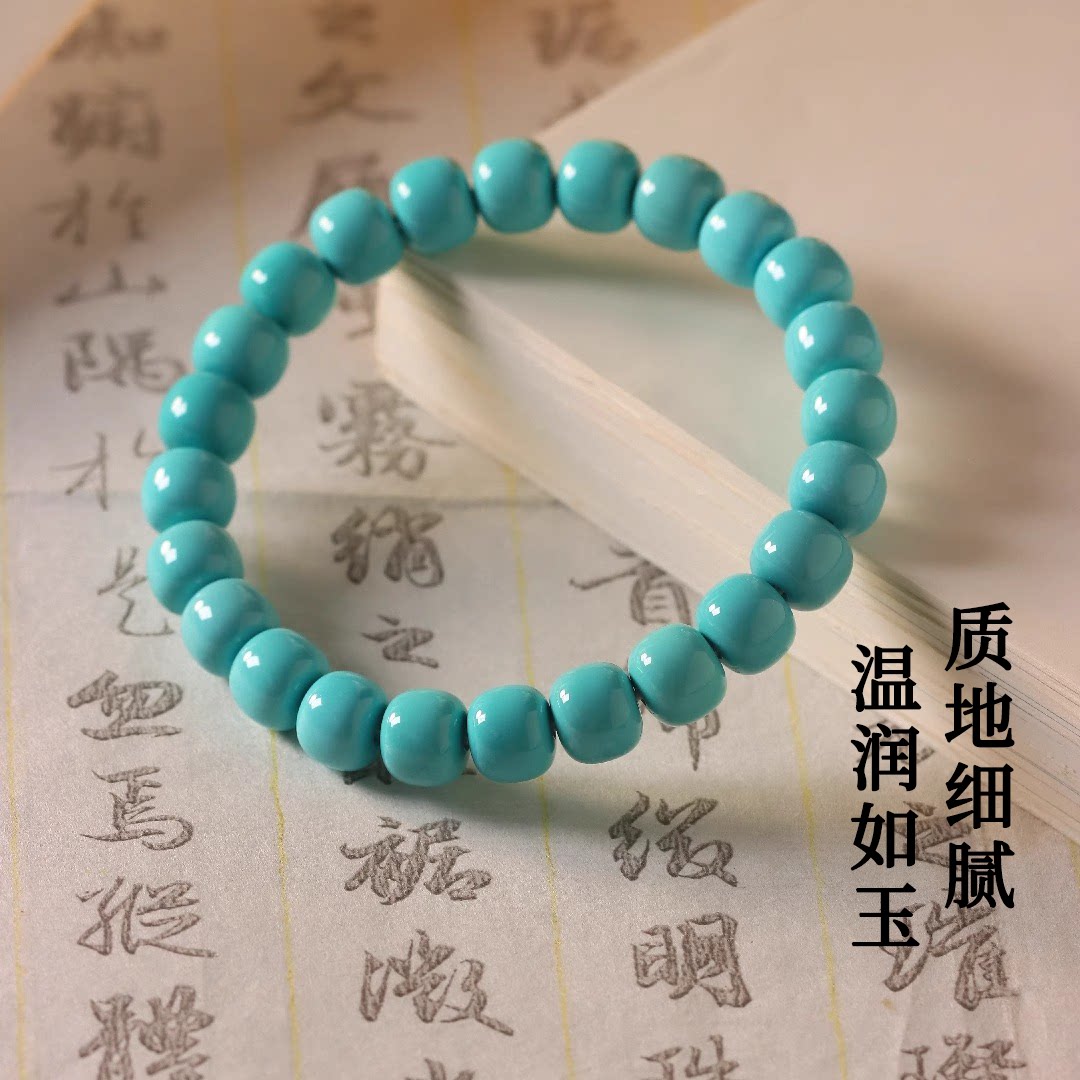 湖北十堰原矿绿松石老型散珠子老料高瓷蓝绿松石佛珠配珠隔片单珠