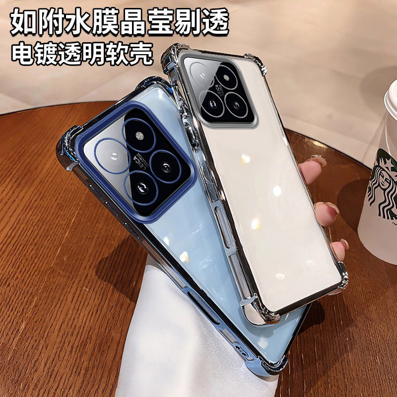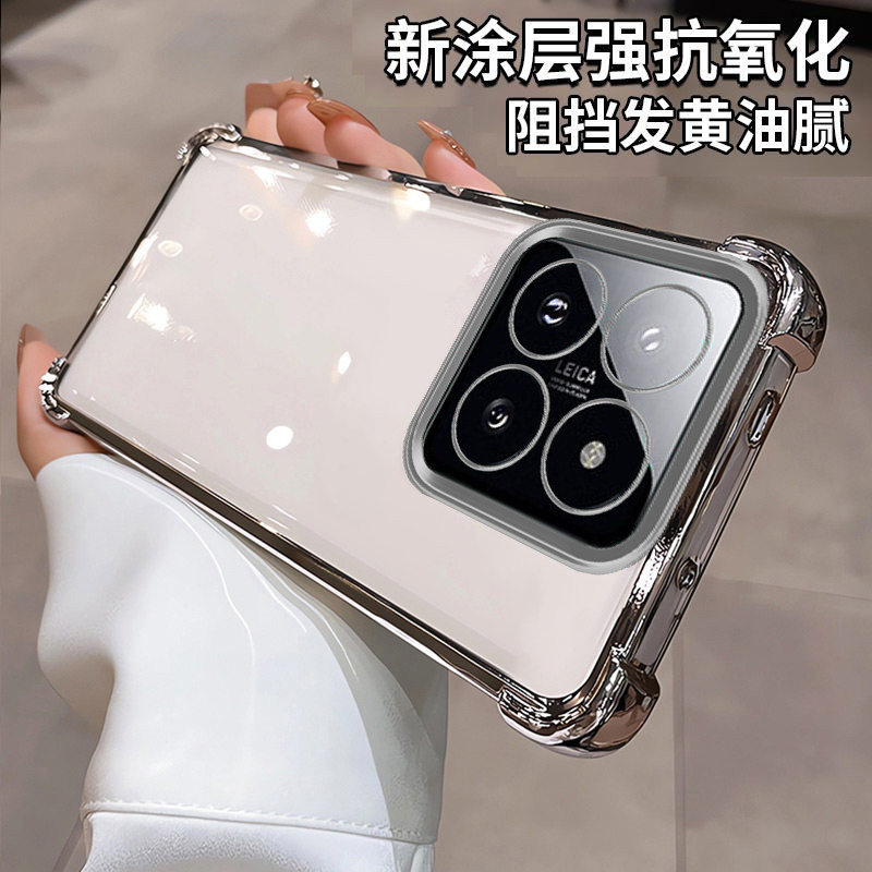 小米14手机壳新款14T四角气囊硅胶防摔时尚14Tpro镜头全包软壳适用14pro高端奢华强抗氧化简约电镀透明手机壳