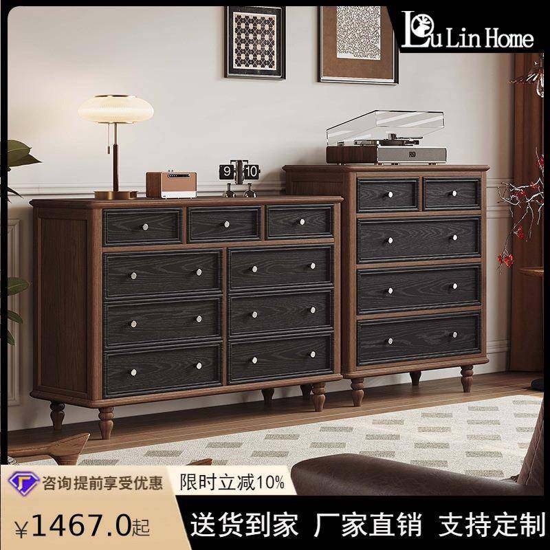 中古风实木斗柜法式客厅靠墙九斗收纳柜卧室床尾多功能储物柜子