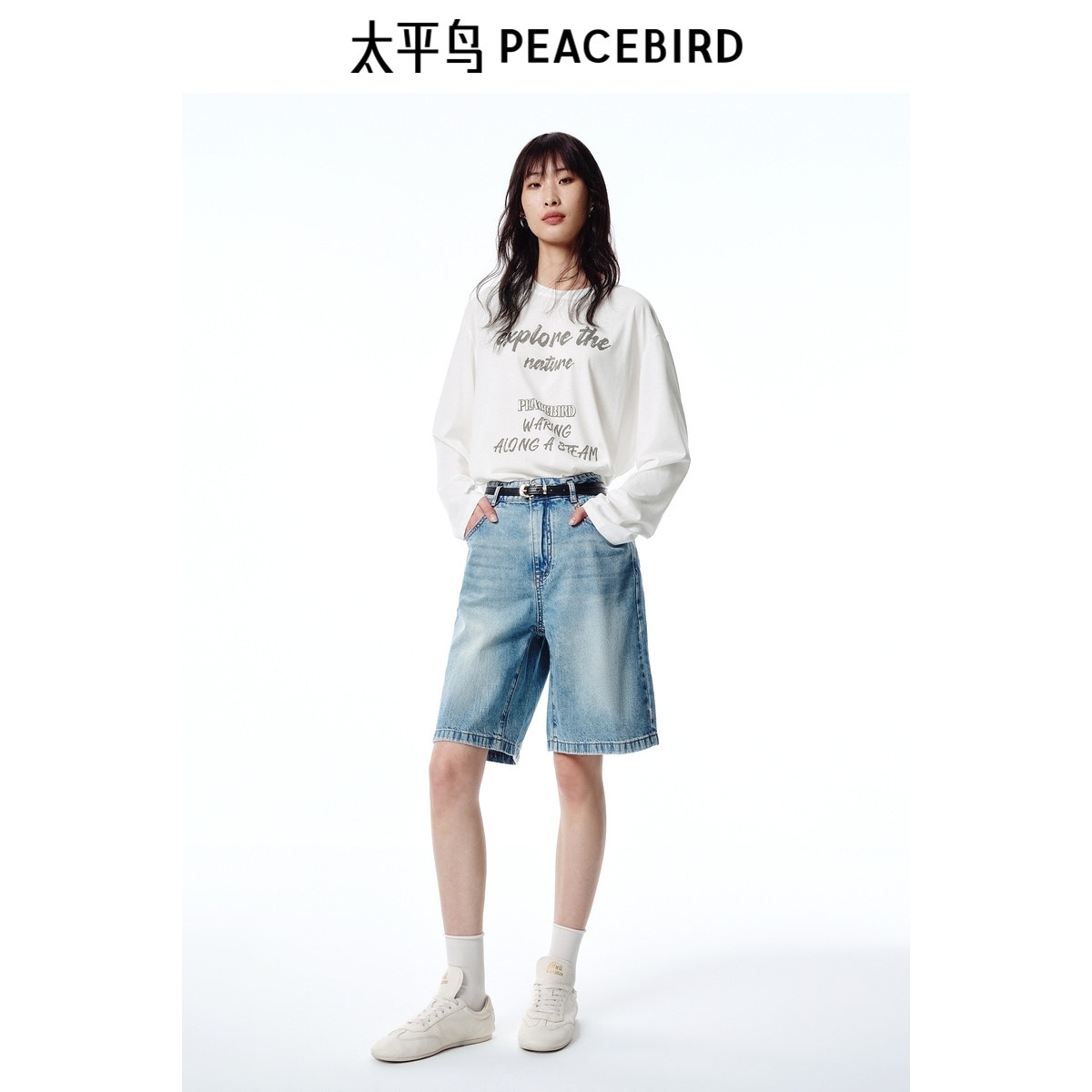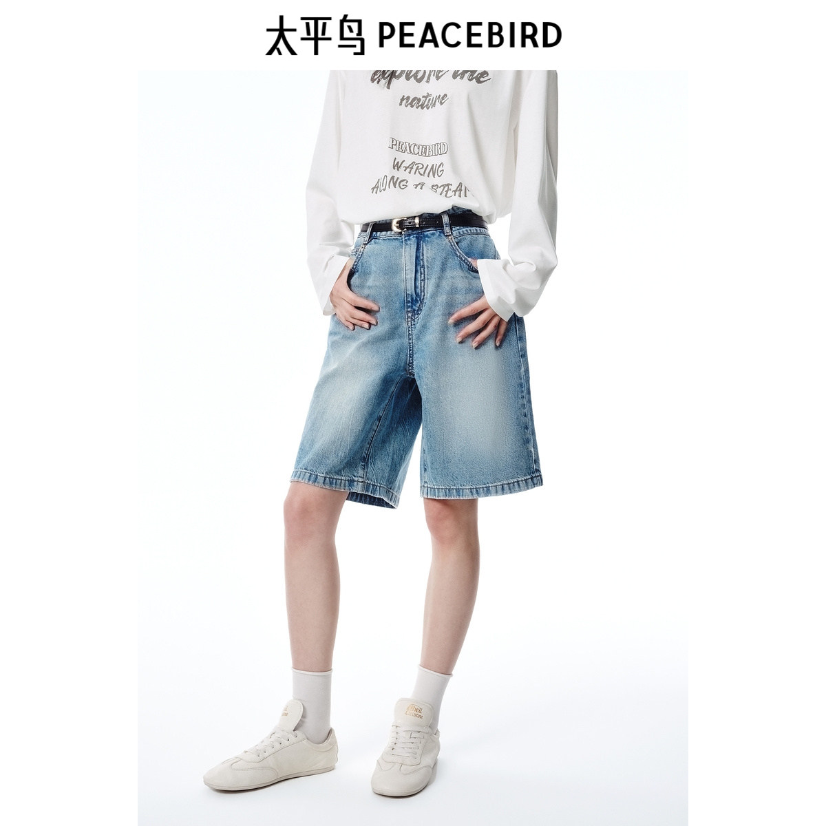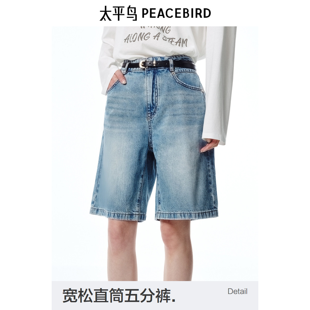 商场同款 太平鸟女2025年夏季新款配腰带高腰牛仔中短裤A1HBF2490