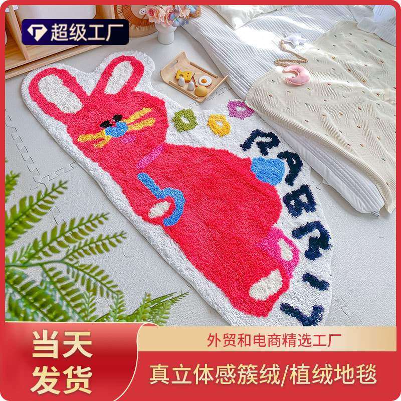 小单 卡通地毯 植绒地毯浴室垫卧室簇绒地毯客厅机织苔藓地毯