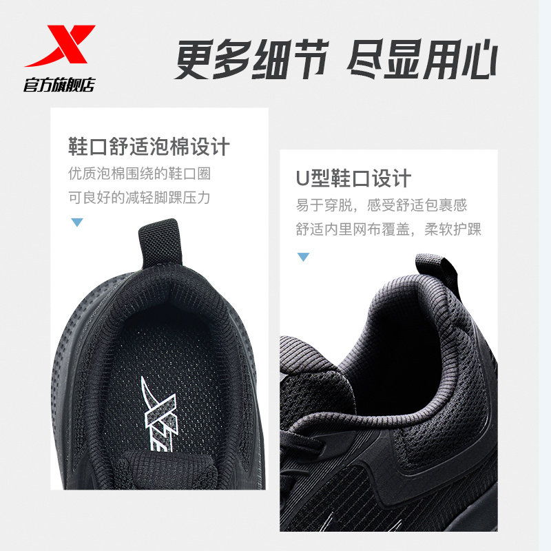 特步跑步鞋男鞋冬季新款黑色运动鞋皮面防泼水爸爸减震网面休闲鞋