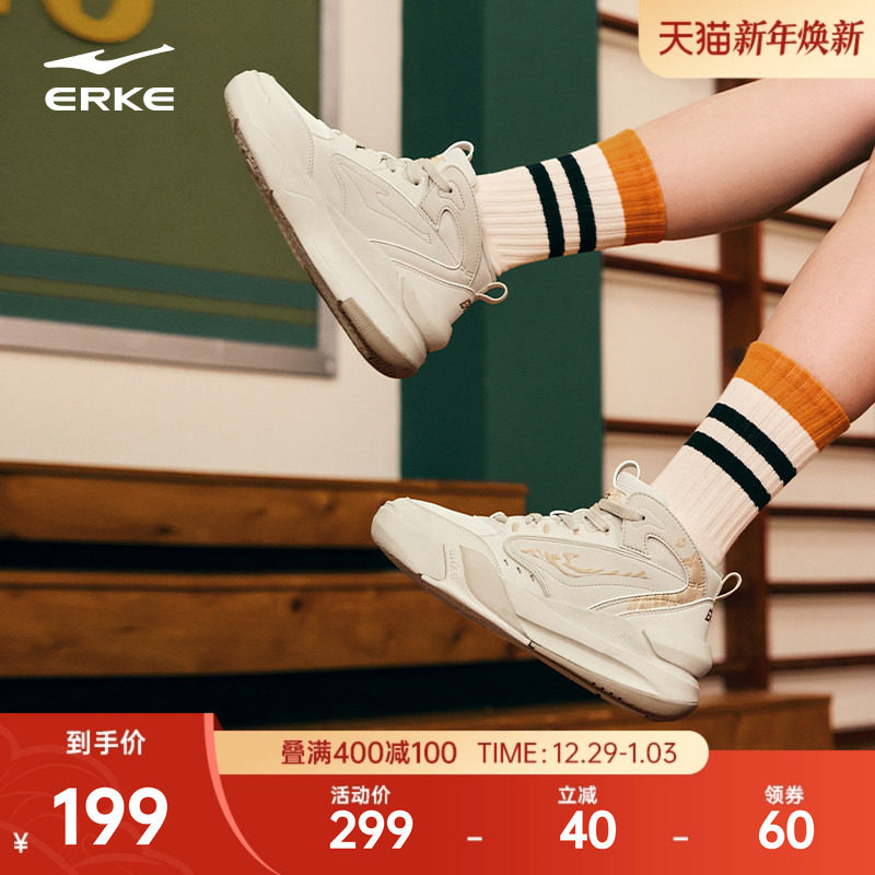 唐宫夜苑鸿星尔克板鞋女鞋冬季鞋子高帮厚底增高鞋皮面加绒运动鞋
