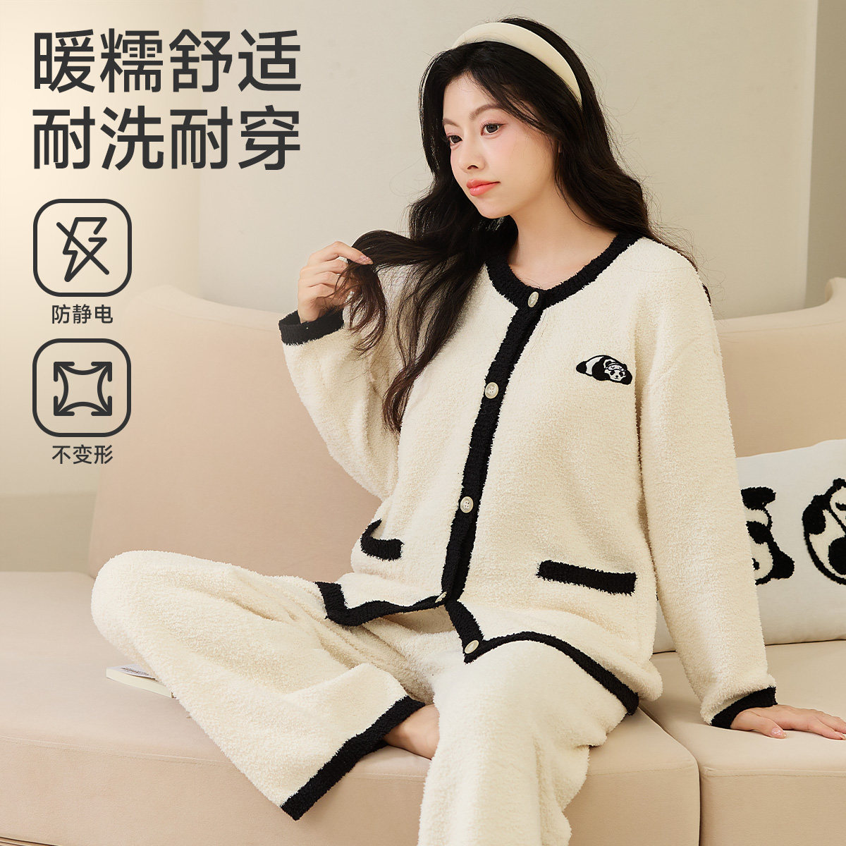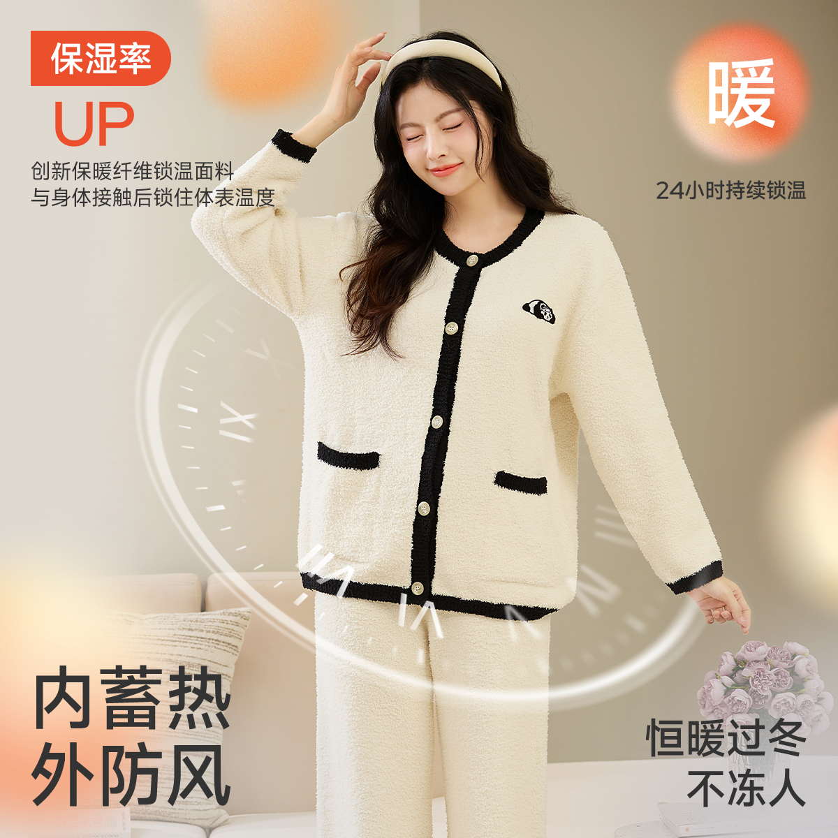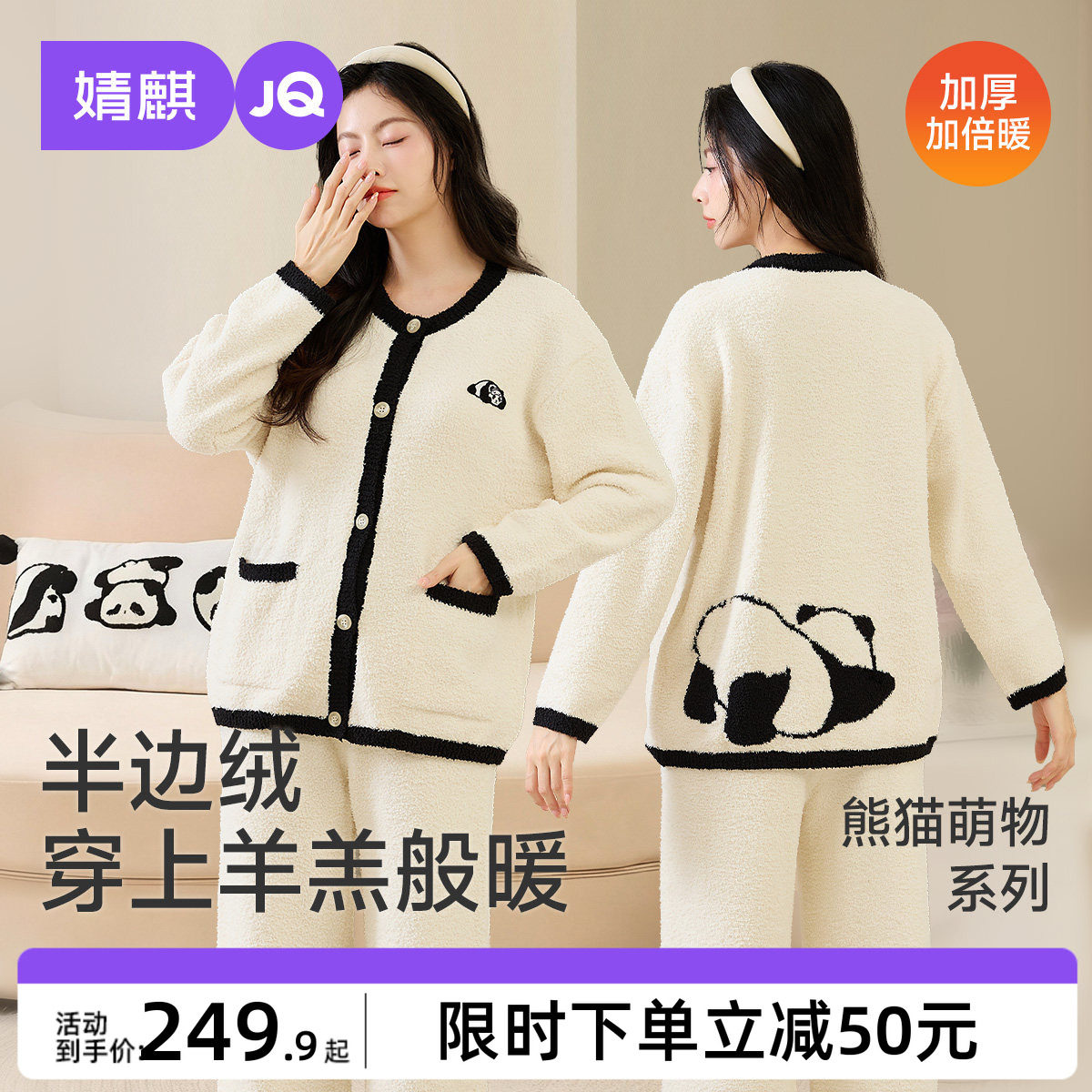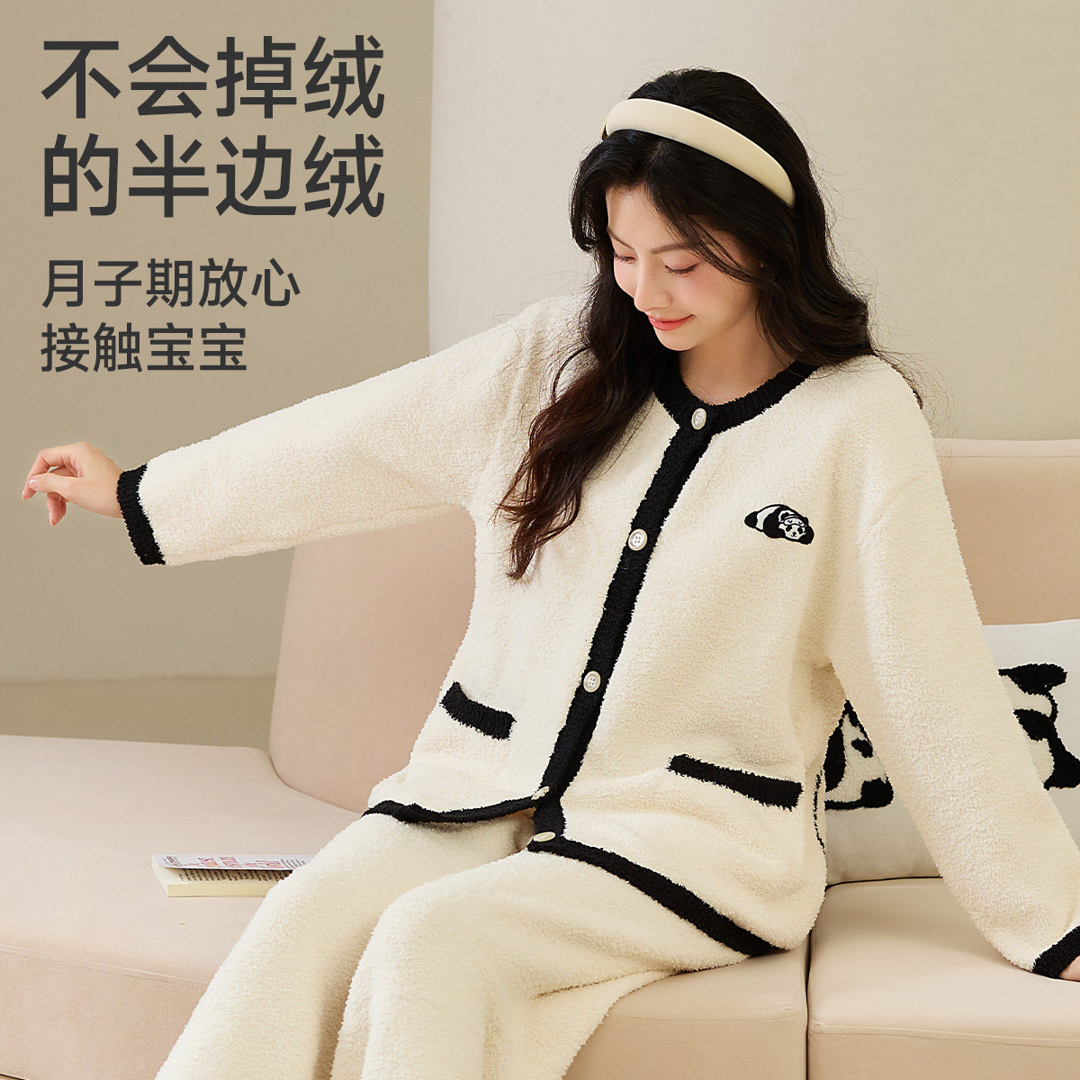 婧麒半边绒月子服孕妇冬季产后加厚加绒哺乳睡衣喂奶待产妇家居服