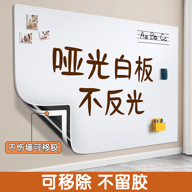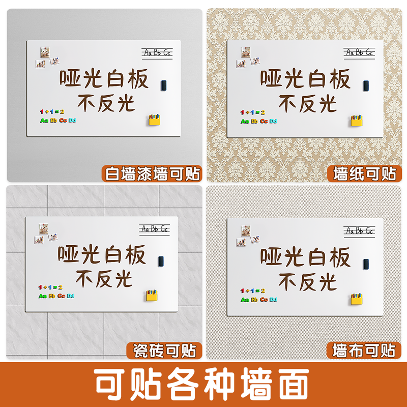 白板写字板办公哑光磁吸黑板儿童画画板涂鸦墙贴自粘小白板可移除不伤墙定制磁力留言记事板白板家用教学可擦