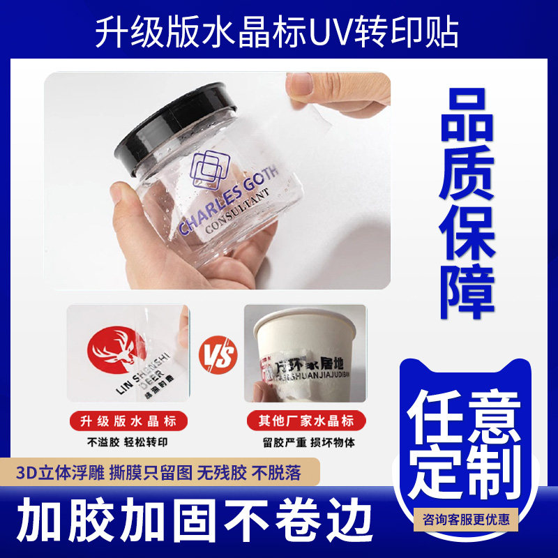 uv水晶标转印贴定制透明转移LOGO商标定做镂空撕膜留字茶叶分离标签烫金贴纸订做广告不干胶烫银标贴印刷Logo