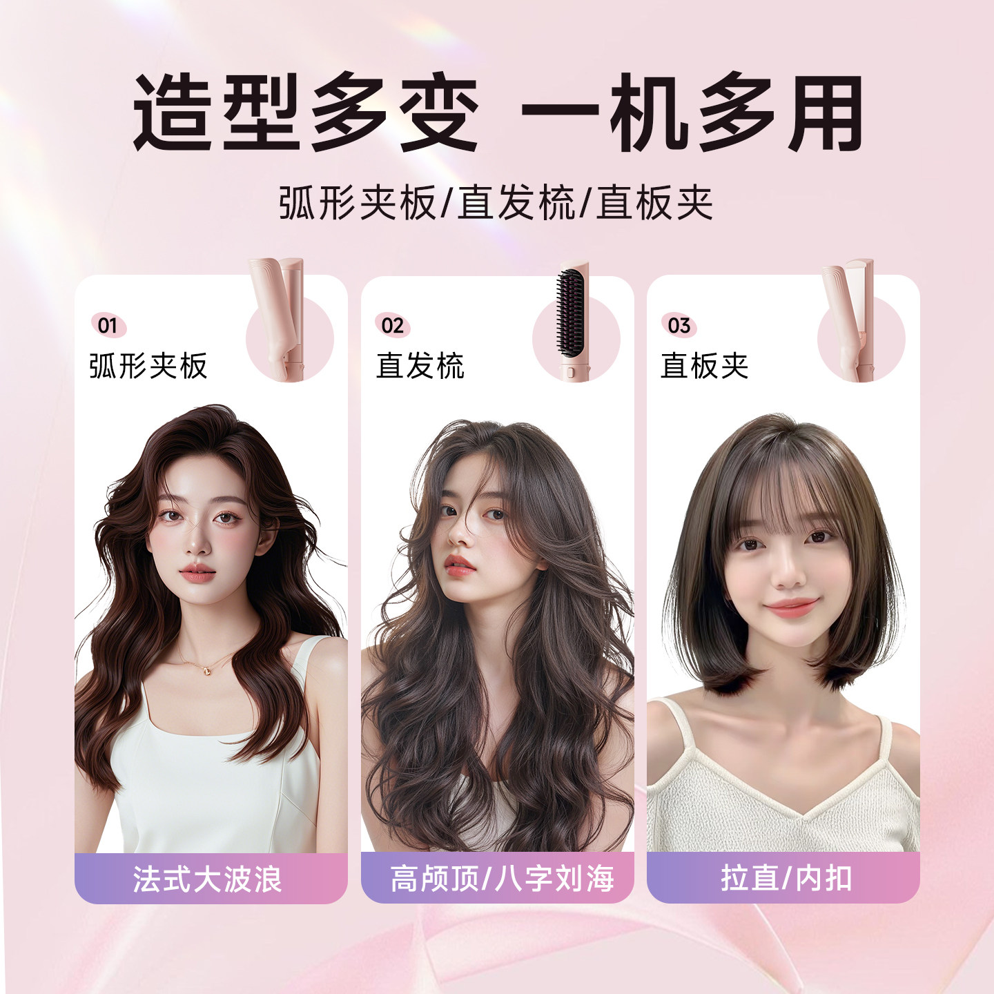 冷风直发梳负离子弧形夹板多合一卷发棒直板夹两用蓬松高颅顶神器