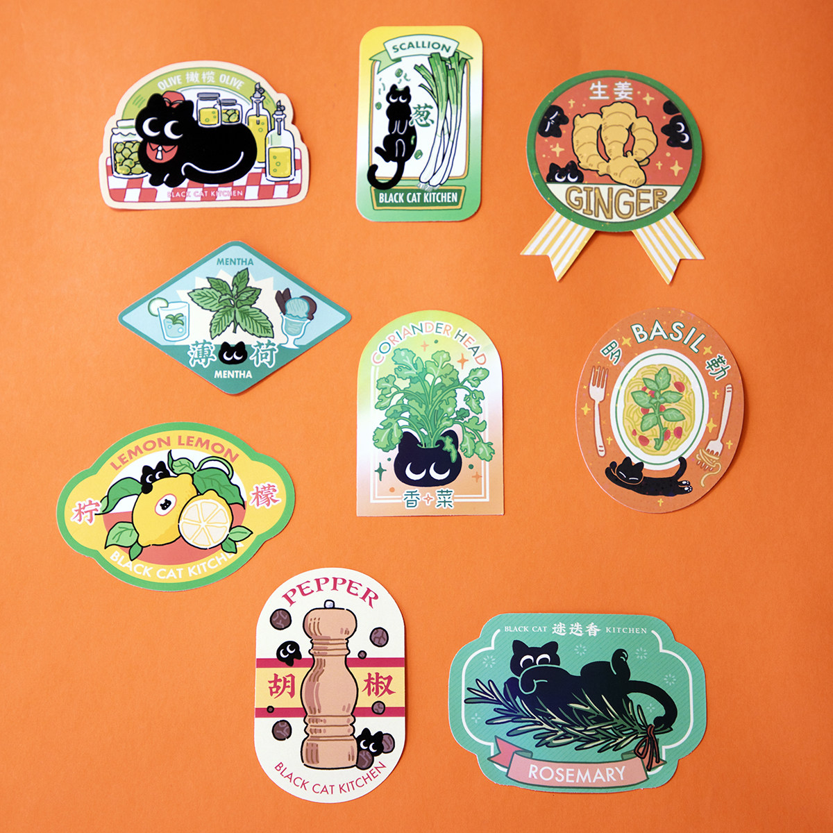 猹鱼商店 <香料猫>第二弹 防水pvc贴纸行李箱 原创黑猫西式香料