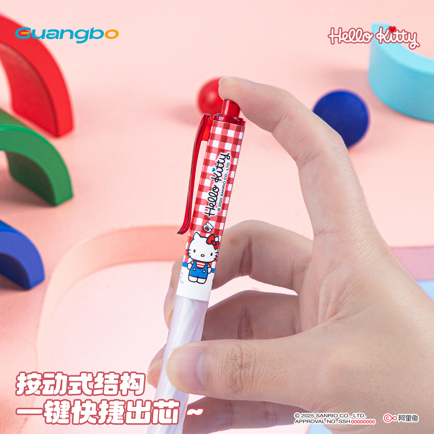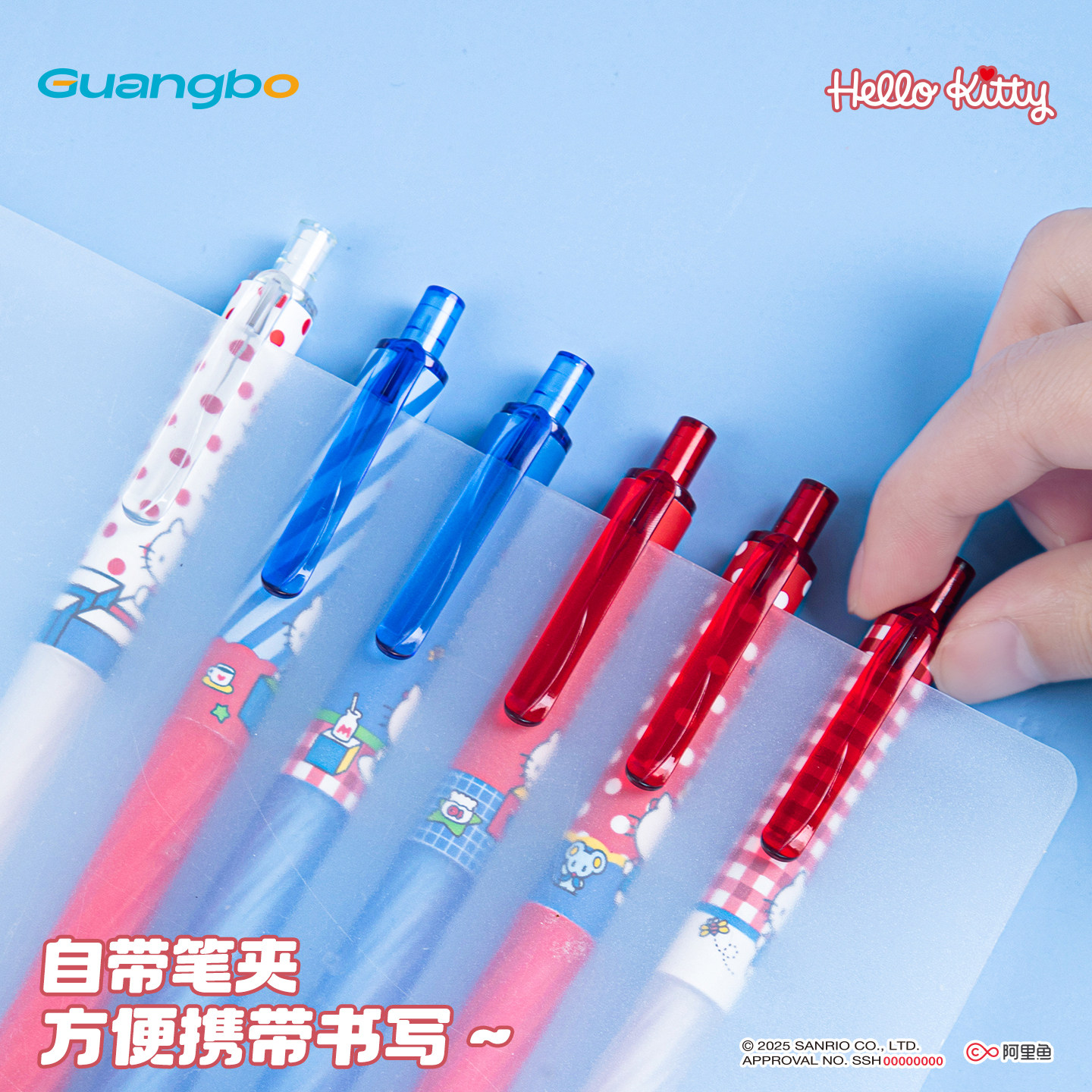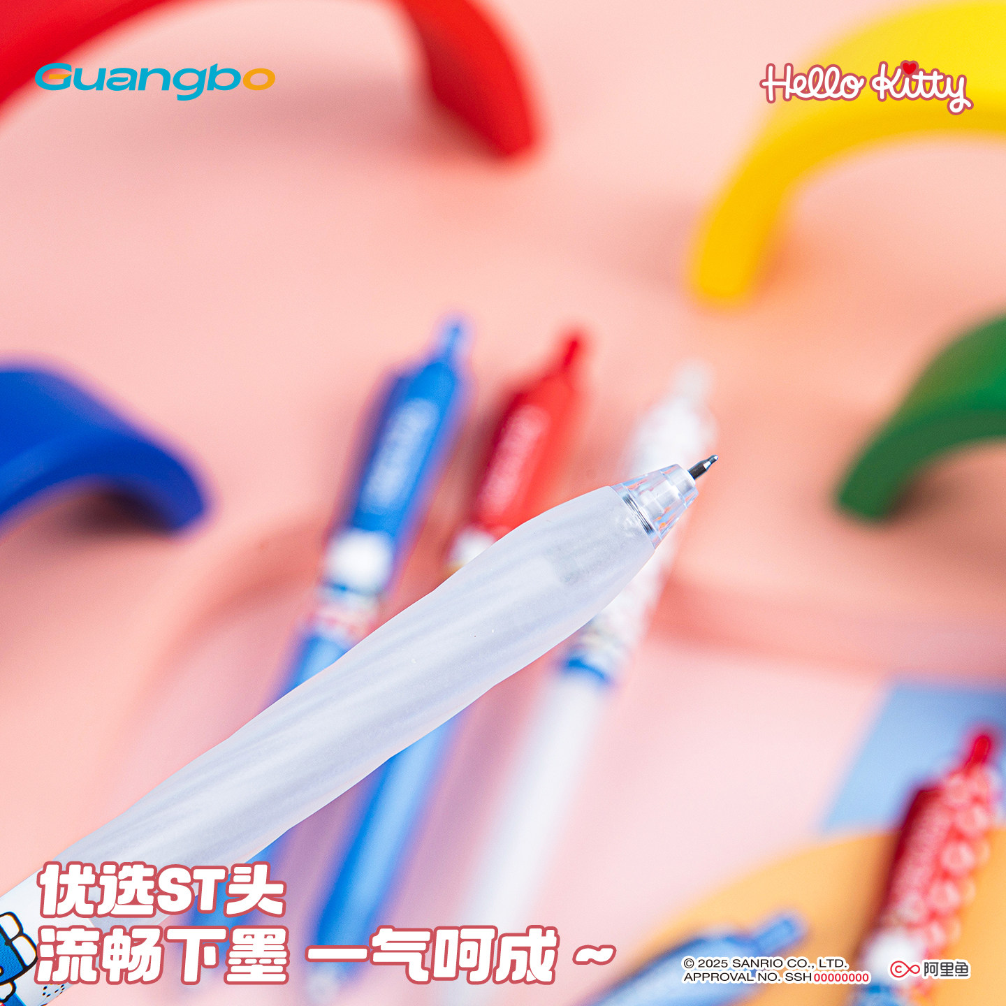 广博3支三丽鸥ST按动中性笔高颜值ins风女生款凯蒂猫刷题笔黑色笔中性笔小学生按动型专用黑笔初中生文具水笔