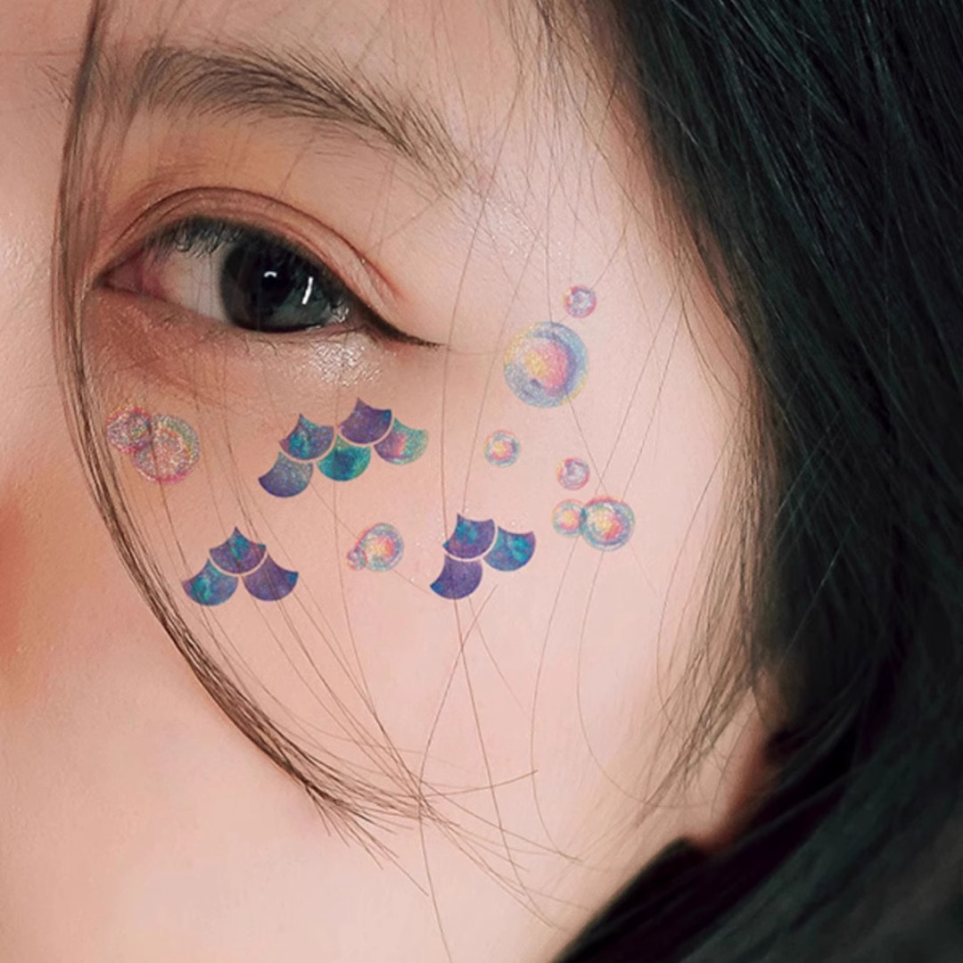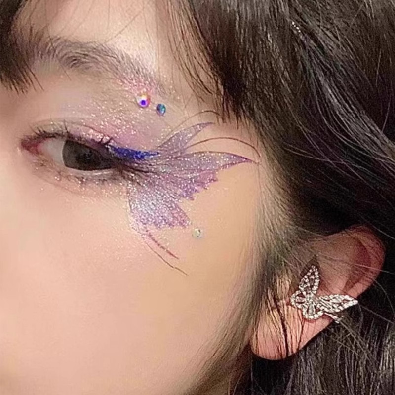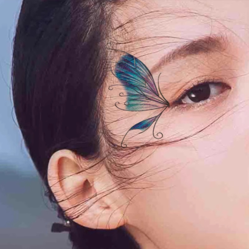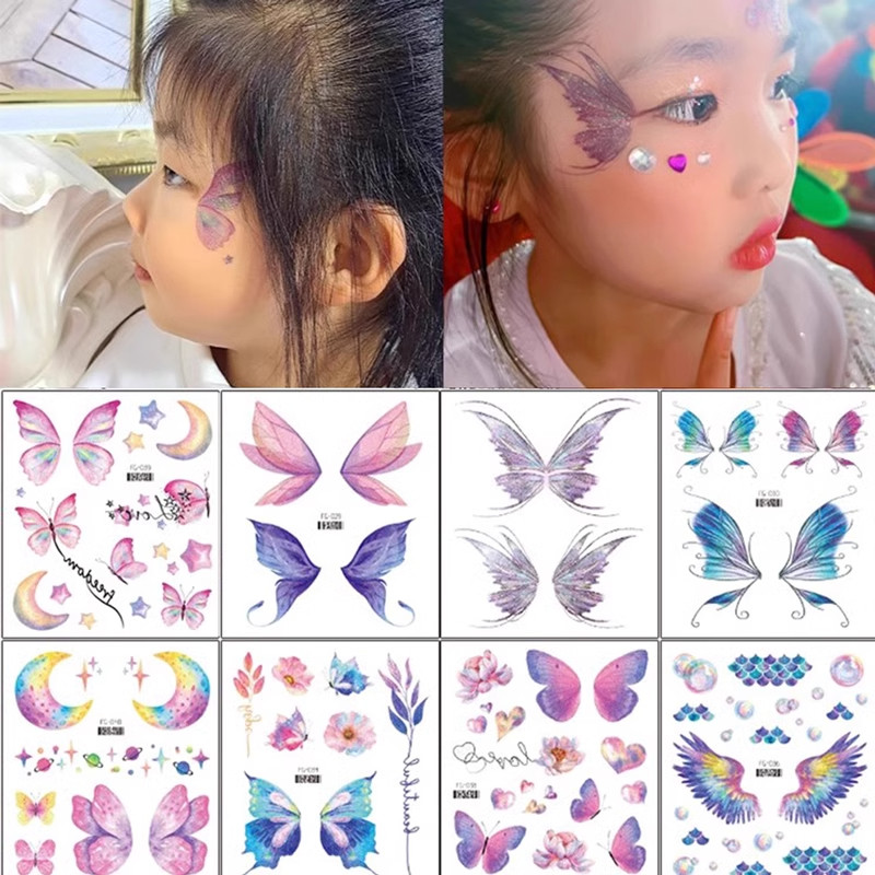 蝴蝶纹身贴儿童眉心贴额头印花面部脸部彩绘贴纸女孩可爱舞台妆容眼角贴画可水洗幼儿园表演眼尾装饰化妆贴纸
