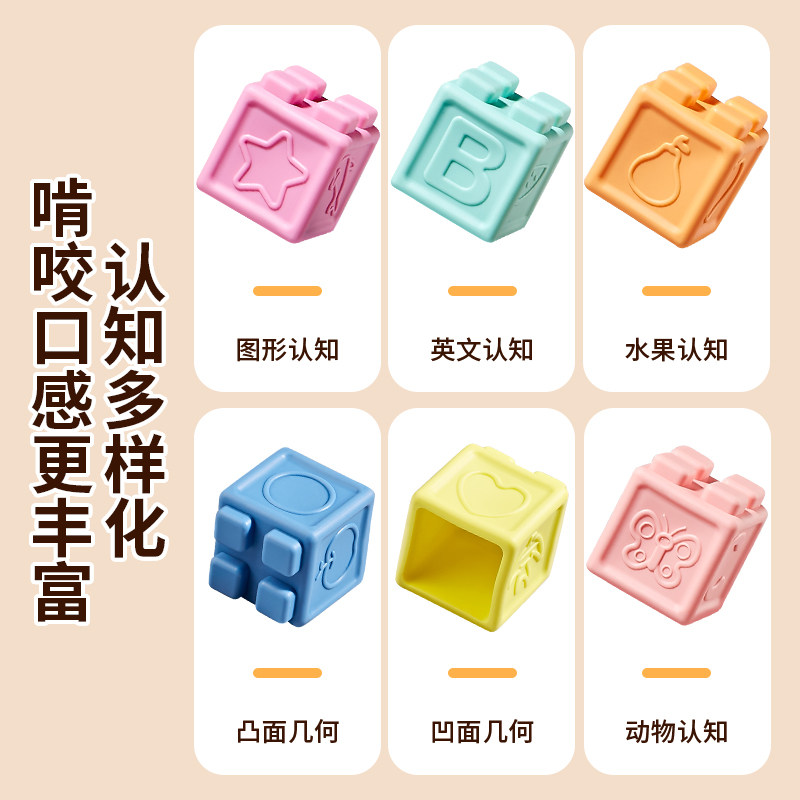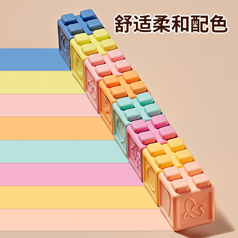 软胶积木婴幼儿可啃咬0-6-12月宝宝硅胶牙胶1岁3抓握训练早教玩具