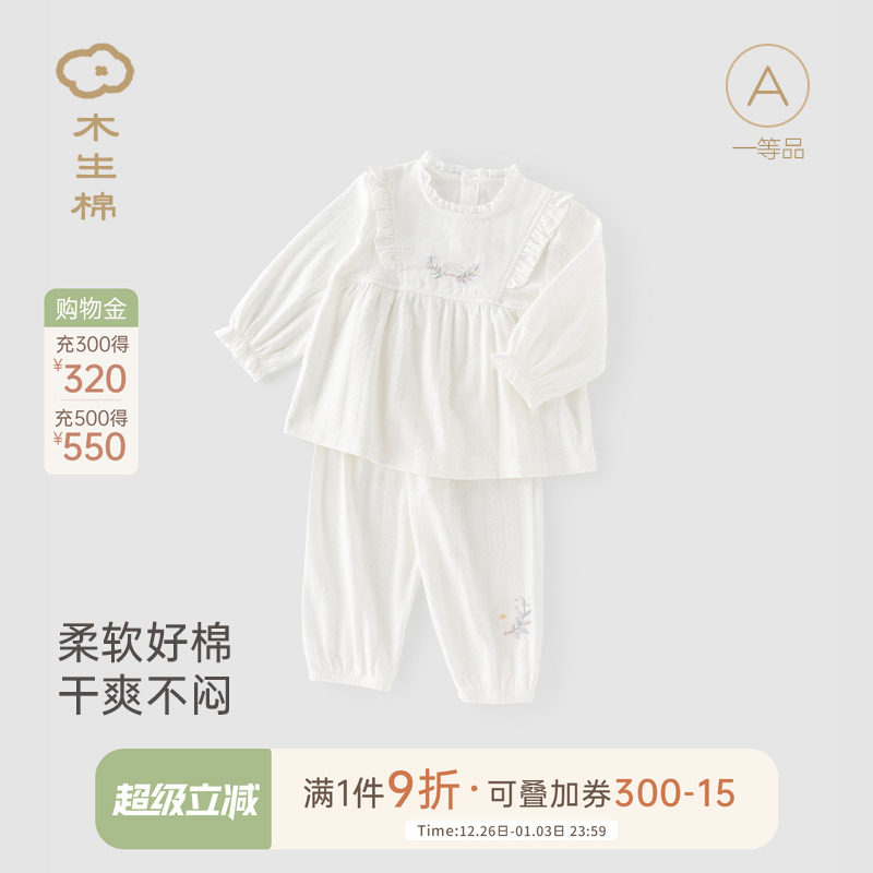 木生棉婴儿内衣套装春秋季女宝宝居家打底睡衣睡裤两件套装睡衣服