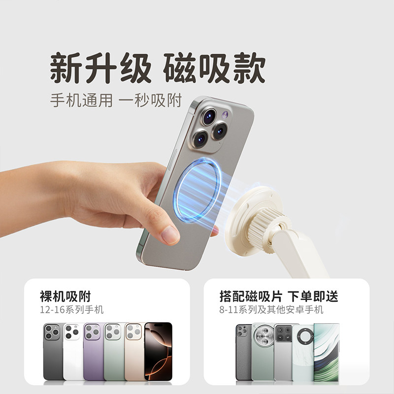 真空吸附磁吸车载手机支架2025新款吸盘车内导航手机架magsafe无线磁吸伸缩折叠便携架子墙壁通用神器